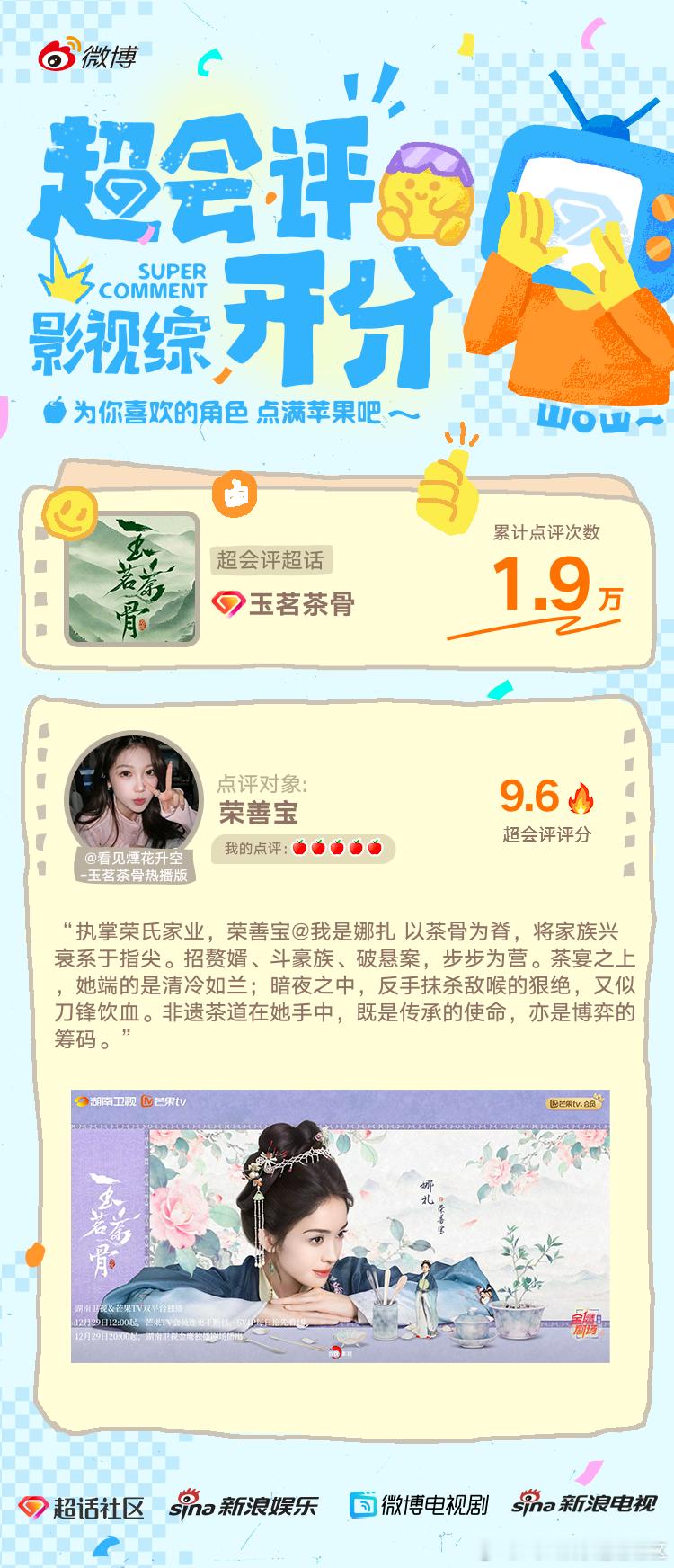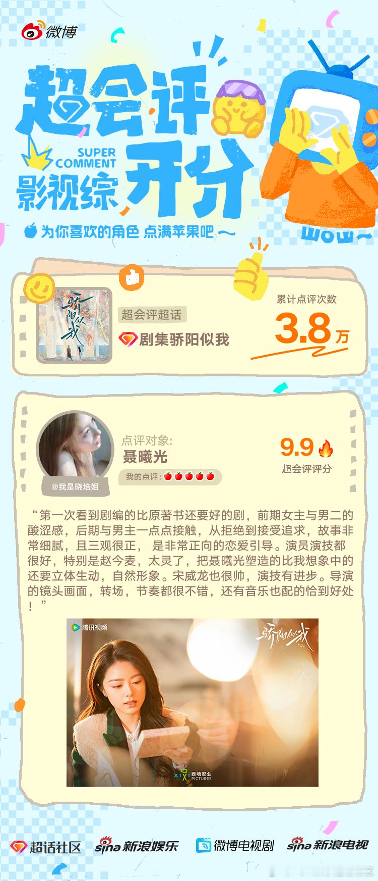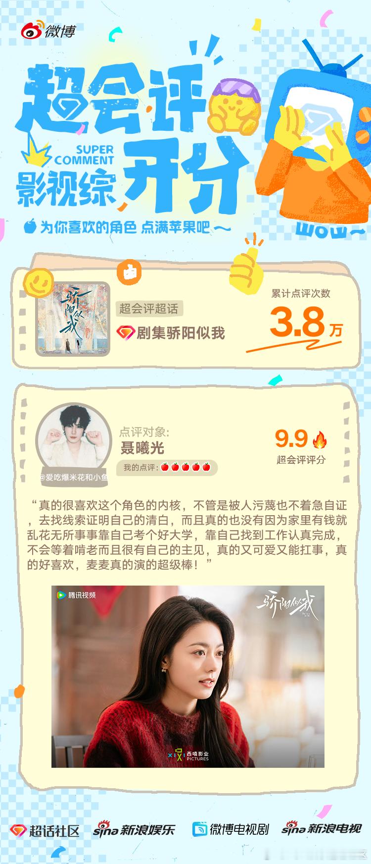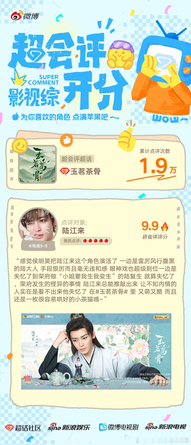 影视综超话超会评开分 恭喜以下uu们为影视综超会评贡献的优质内容,以下被公示的优质点评内容均可获得超话周边礼品一份(此排名不分先后顺序)~剧集骄阳似我 丨玉茗茶骨 丨剥茧 丨 电视剧逍遥 丨 电视剧人之初 丨 更多新剧超会评即将上线,欢迎uu们输出对角色的优质点评,活动发起请关注每月月初公布的活动PR!