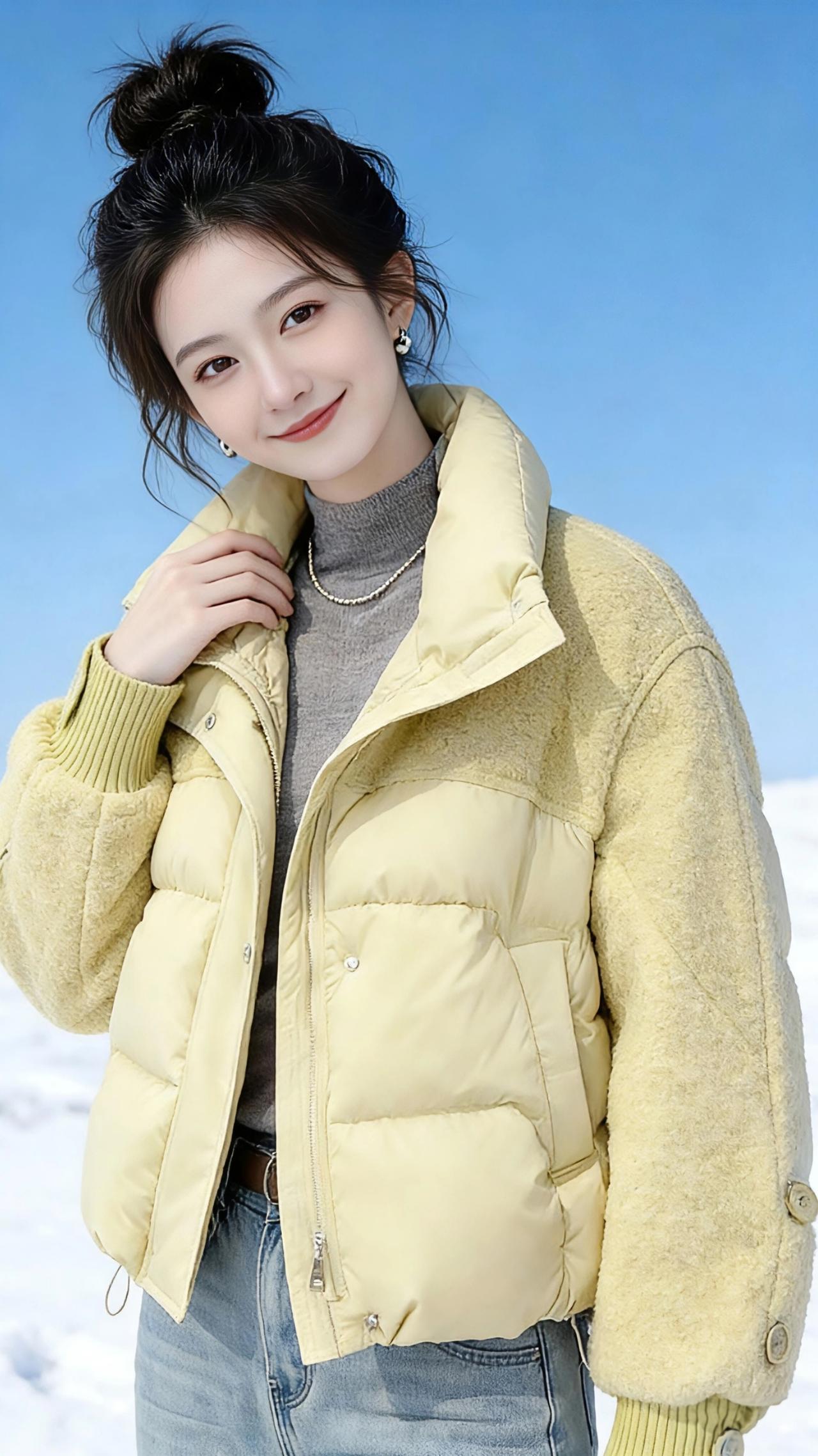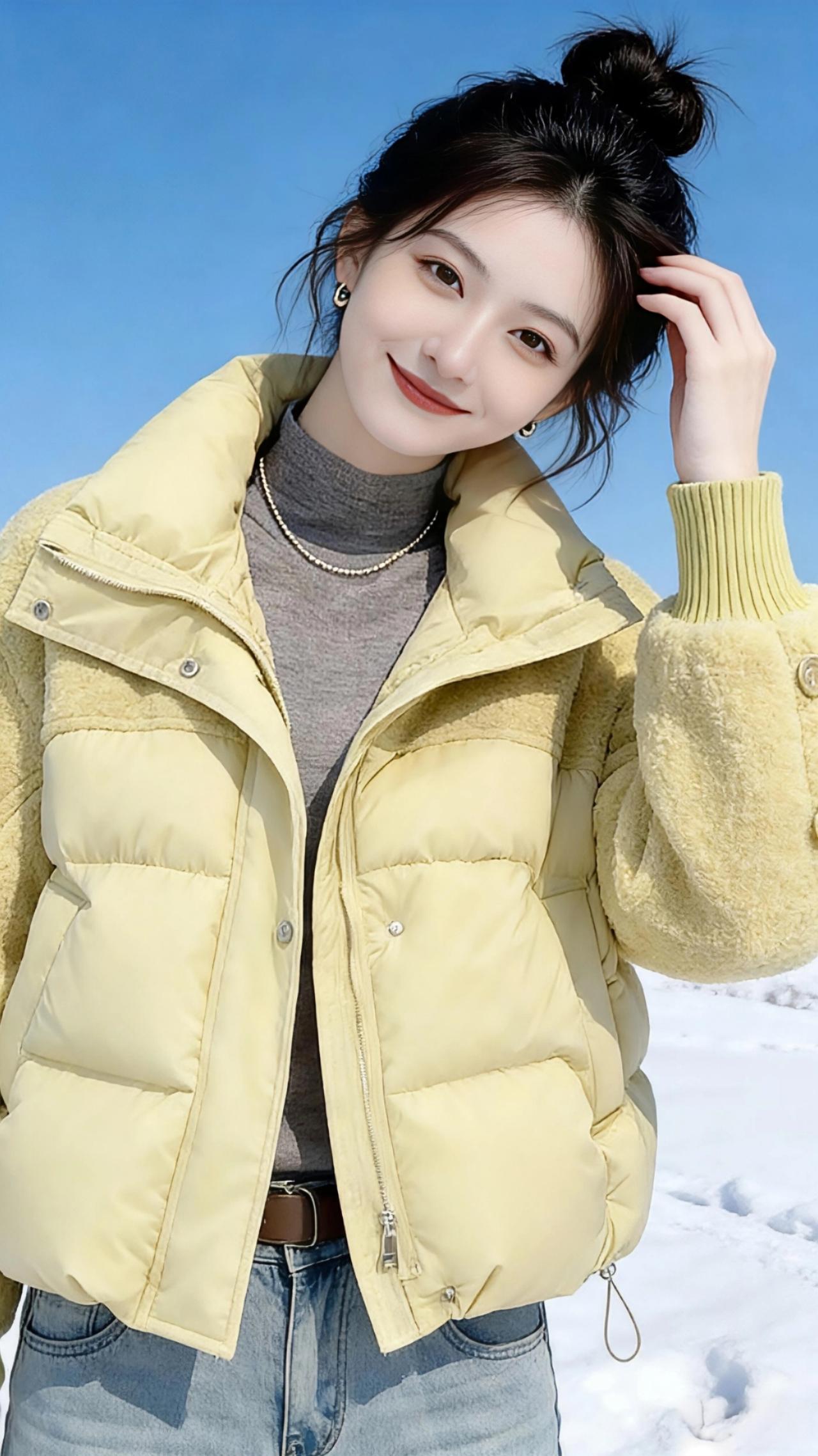 我会根据这组雪地写真为你创作一篇散文。 晴日雪原 风卷着碎雪擦过耳边,我抬手将吹散的碎发别回耳后,鹅黄色的羽绒服将我裹在一团软乎乎的暖意里,和刺目的白雪撞出温柔的色彩。 高领毛衣贴着脖颈,带着羊绒的柔软,金属项链坠在锁骨上,在晴光里泛着细碎的光。我轻轻扶着翻领,看流云在澄澈的蓝天里慢慢舒展,雪地上的脚印被风很快抚平,好像从没有人踏足过这片纯白。 我把手揣进口袋,羽绒蓬松的触感裹着掌心的温度,脚步踩在雪地上,发出咯吱轻响。风掀起衣摆,带着旷野清冽的气息扑在脸上,我却一点也不觉得冷,只觉得这蓝天白雪,都揉进了这片刻的松弛里。 最后我停下脚步,指尖摩挲着羽绒服的面料,看阳光把自己的影子拉得很长,落在这片茫茫雪原之上,把一身暖黄,融在无边无际的洁白里。高级感穿搭 冬季穿搭 新年穿搭 棉衣棉服