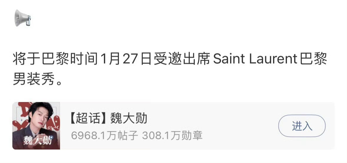 魏大勋确定出席巴黎时装周行程 魏大勋确定受邀出席巴黎时装周,大勋花又要帅出国门了