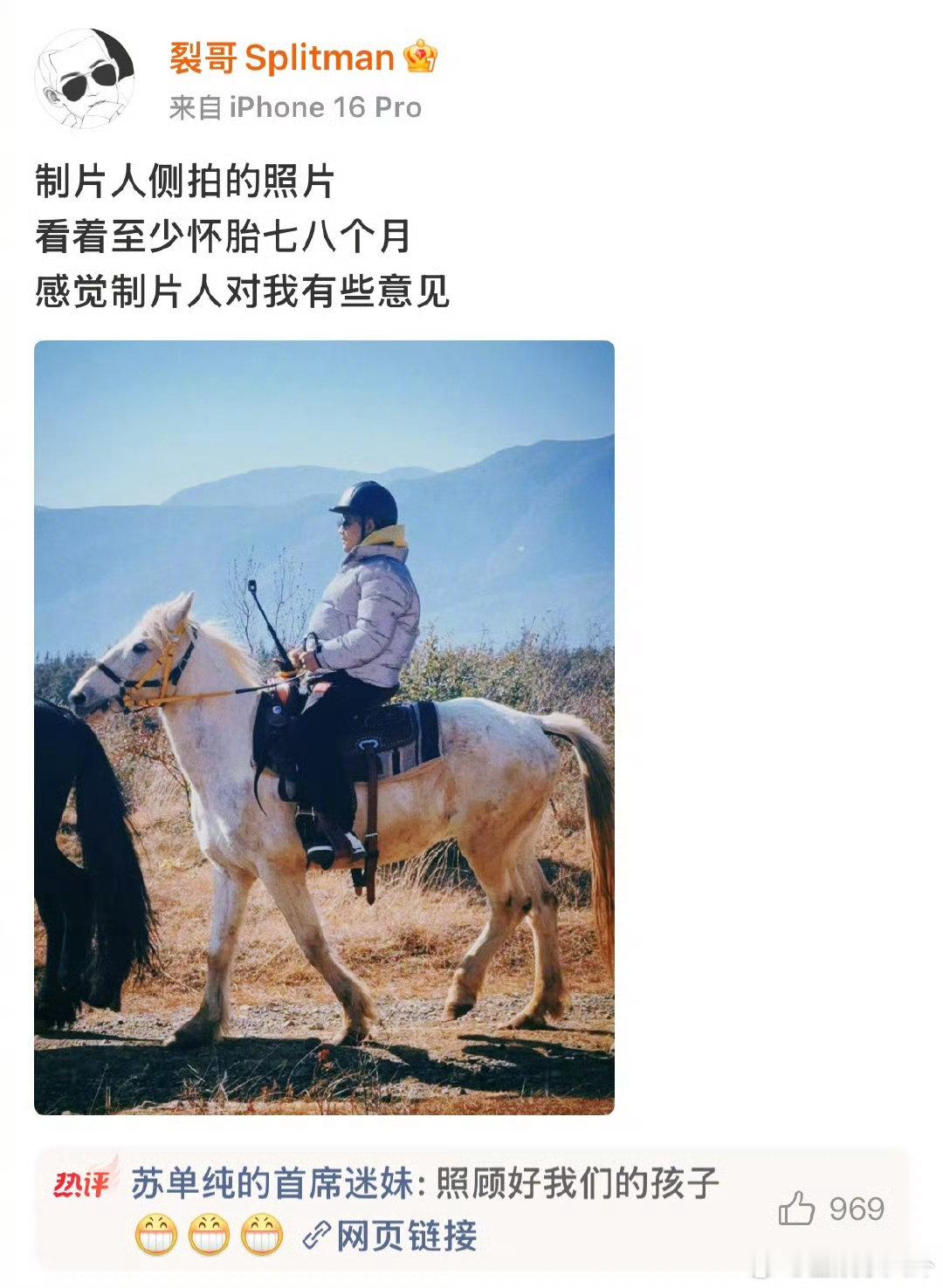 苏醒这张照片算工伤快乐老友记 镜头你是懂“制造笑点”的!苏醒骑马侧拍本应帅气,结