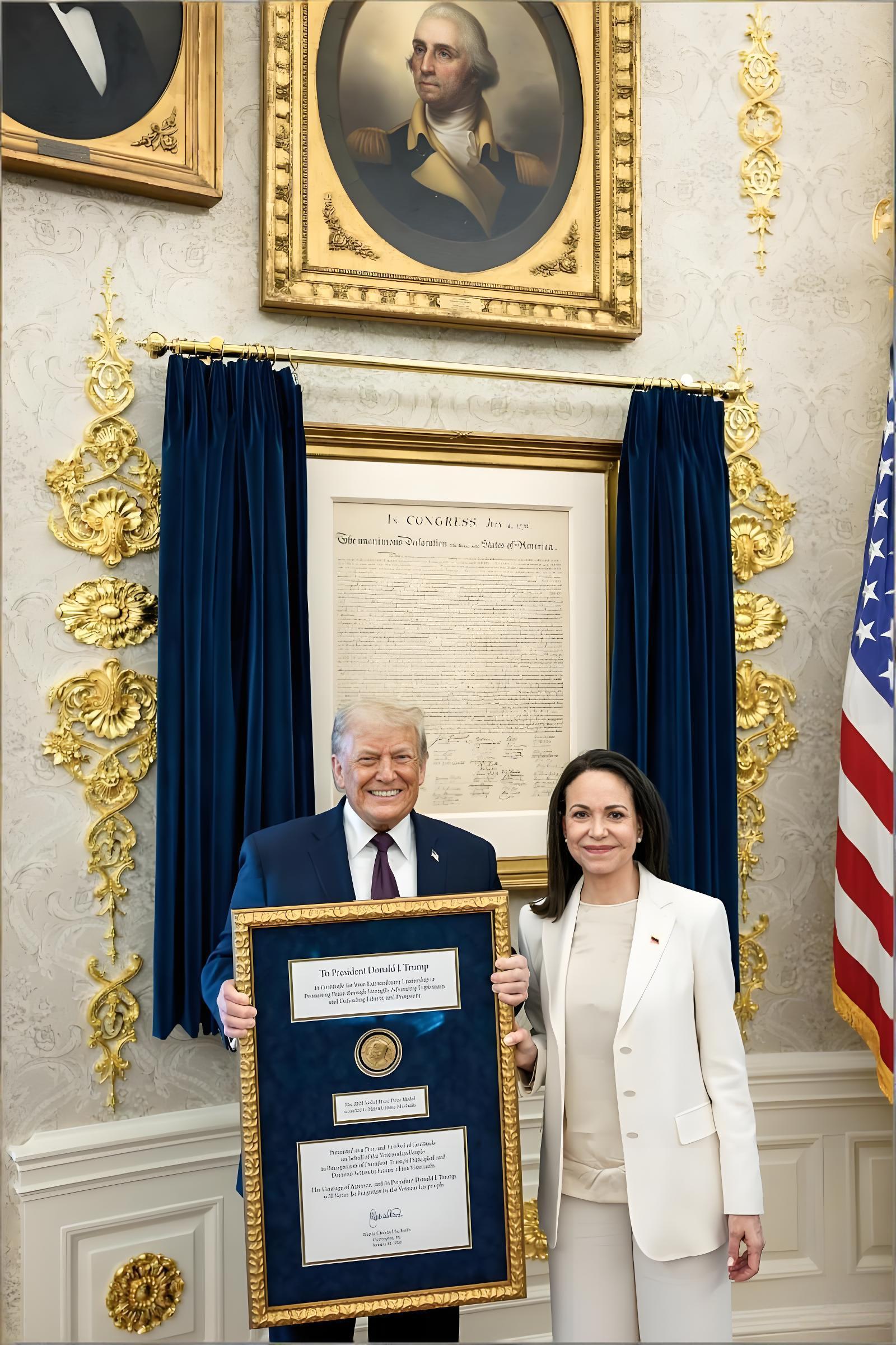 格陵兰岛的枪声,乌克兰的战火:特朗普的和平奖章,早被血浸透了 特朗普笑纳"转让"的诺贝尔和平奖,却不知羞耻。一年空袭620次,威胁吞并格陵兰,纵容俄乌战争——这个战争贩子竟将和平奖章当遮羞布。诺贝尔奖明文禁止转让,他却用抢来的光环掩盖摧毁1945年国际秩序的累累罪行。当战火燃遍全球,那枚二手奖章只剩火药味与铜臭味。和平从不需要赃物证明,这是对和平最辛辣的嘲讽,也是文明退回丛林的阴森预警。 #特朗普 #二手和平奖 #国际秩序破坏 #马查多把诺贝尔和平奖颁给特朗
