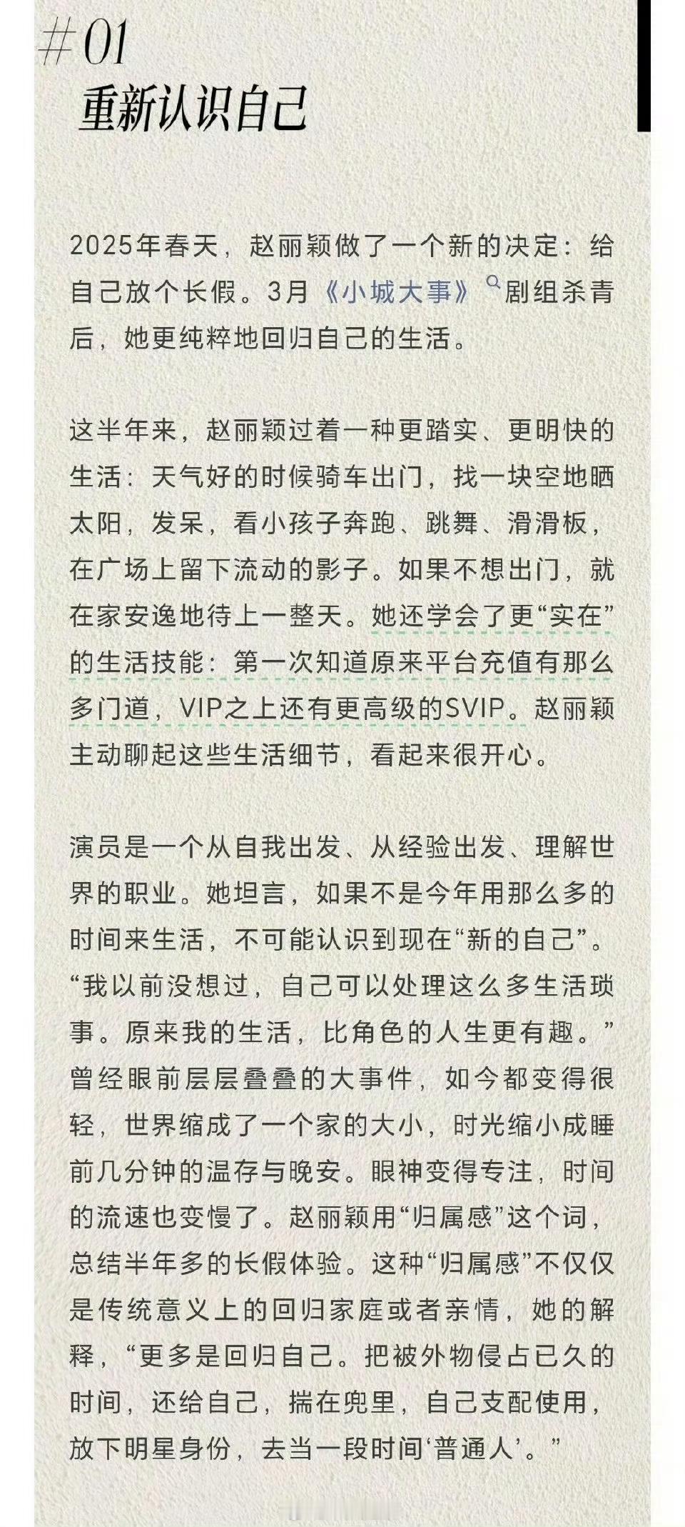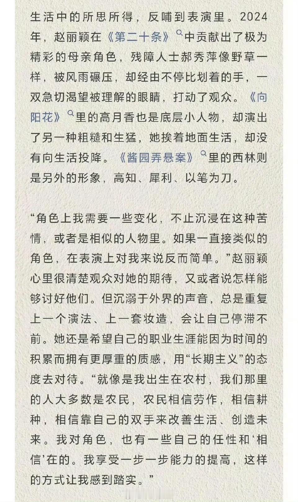 赵丽颖ELLE杂志采访。我丽的每一次发言都好真诚,这么多年,她仍热爱生活,生活与事业同样重要,她对自己有清晰的认知,每一步都知道要怎么去走,且不被外界随意裹挟,富有柔软而坚韧的内心