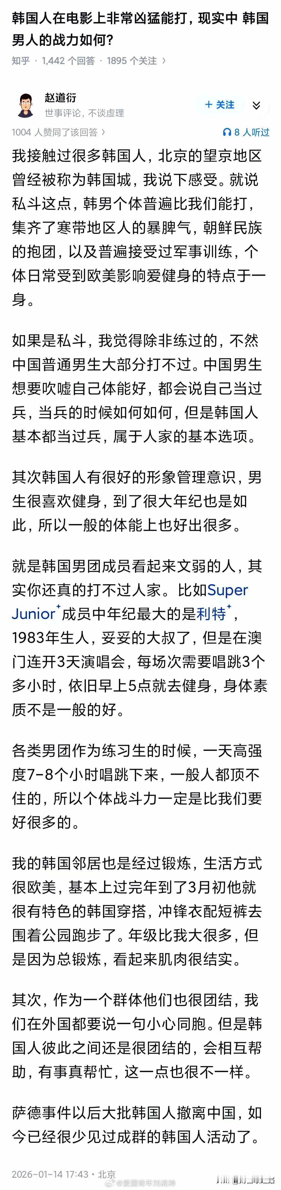 “韩国人在电影上非常凶猛能打,现实中韩国男人的战力如何?”