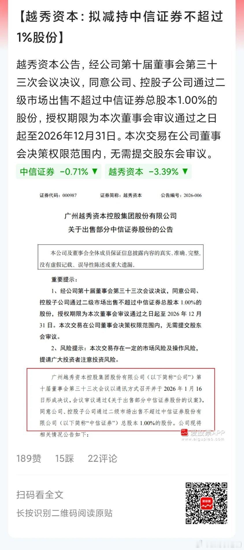 屋漏偏逢连夜雨:券商板块承压之际 中信证券遭1%减持冲击本就身处调整阴霾的券商板块,再迎利空重击——龙头券商中信证券公告将被减持1%股份,且明确减持渠道为二级市场。以中信证券当日收盘4162亿元的市值计算,此次减持套现规模将超40亿元。如此庞大的减持体量,无疑会对本就脆弱的市场情绪形成持续冲击。监管层意在引导市场走出慢牛行情的初衷不难理解,但令人唏嘘的是,此番承压的恰恰是坚守价值投资的群体。如今券商板块已然沦为散户扎堆的“重灾区”,后续走势如何,唯有静待下周市场给出答案。