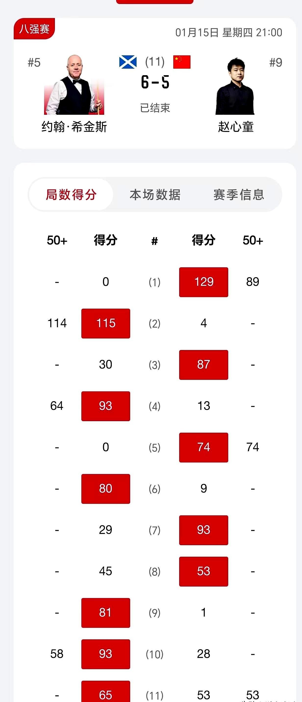 53分,一颗红球,赵心童把到手的胜利直接送出去。 5比3的赛点都能翻车,说到底就是防守太糙,进攻一断电就全完。 希金斯赛后一句“我运气好”听着客气,其实是当面打脸。 特鲁姆普更狠,又是6比2,把艾伦打包带走。 连续两轮同一个比分,他自己都嫌无聊,可对手就是扛不住。 首轮清一色6比2已经够离谱,八强刚开打就送走一位中国头号种子。 现在就剩吴宜泽和肖国栋,俩人还得先内斗,谁赢都得掉层皮。 中国军团想再冲大满贯,先把内部这关啃下来再说。