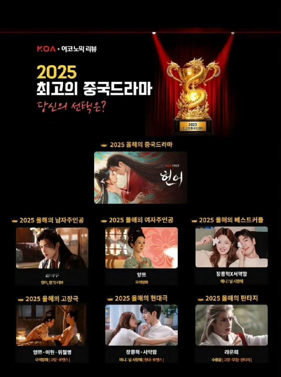 《献鱼》在韩国2025年播放的电视剧中获得2025中国年度电视剧,陈飞宇拿下20