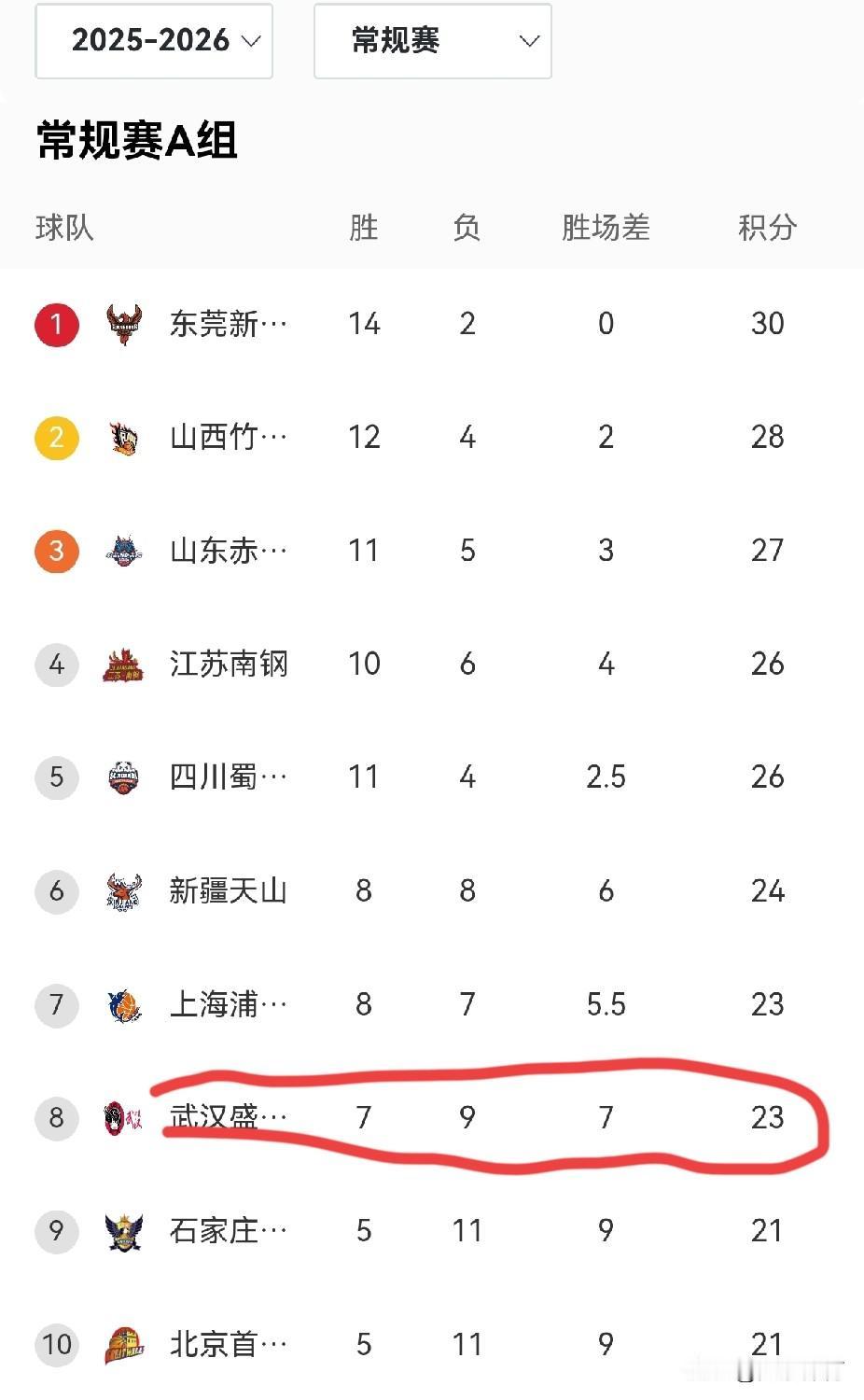武汉盛帆,挣扎在季后赛的边缘 WCBA第16轮比赛, 武汉盛帆黄鹤76-85山东赤水河酒 武汉两连败后,在WCBA积分榜上排名第八(A组),继续挣扎在季后赛边缘。 但是,从比赛比分看,武汉输球输分不算多,实力与对手差距不大,每一场胜利都需要拼字当先。