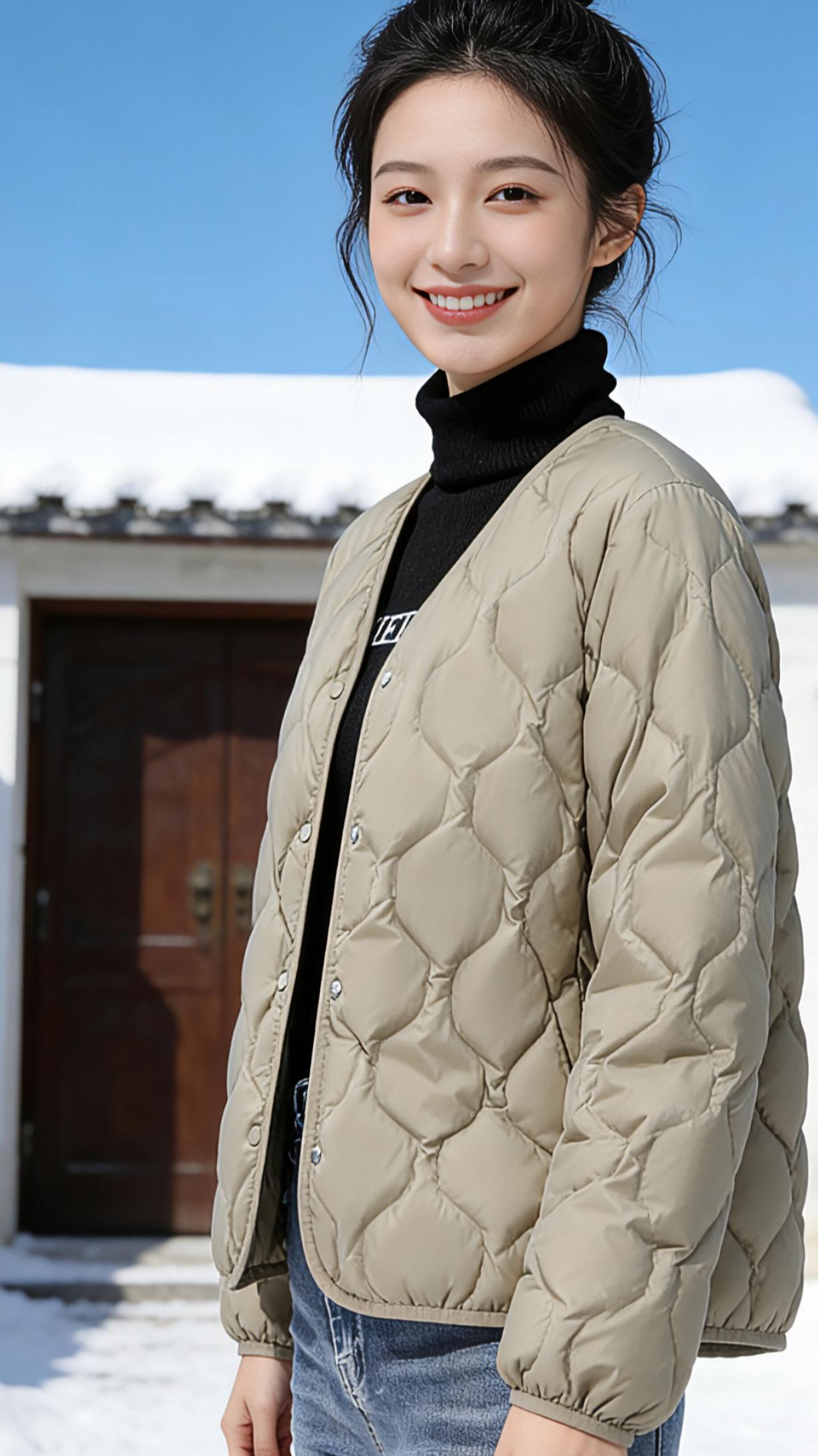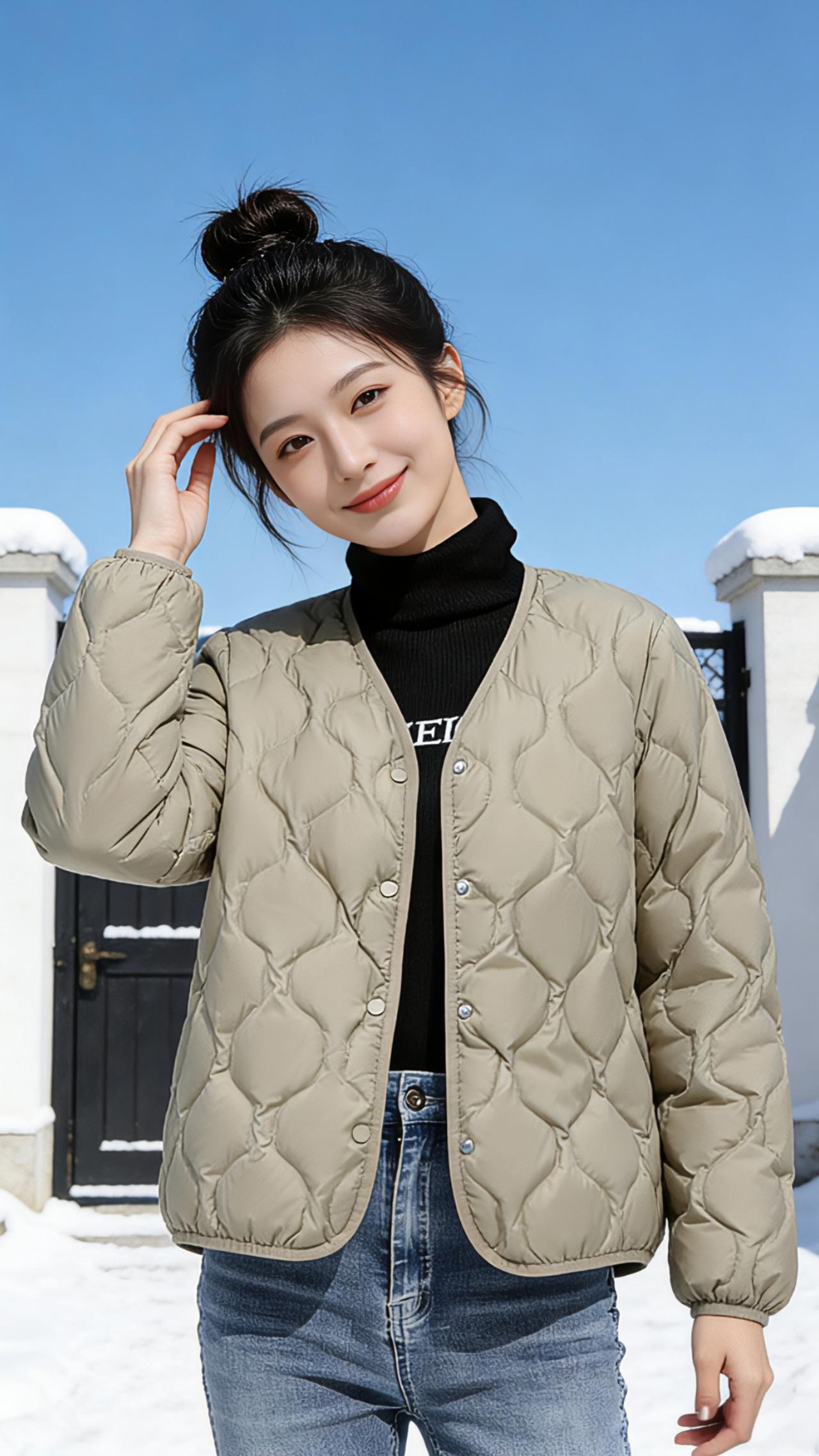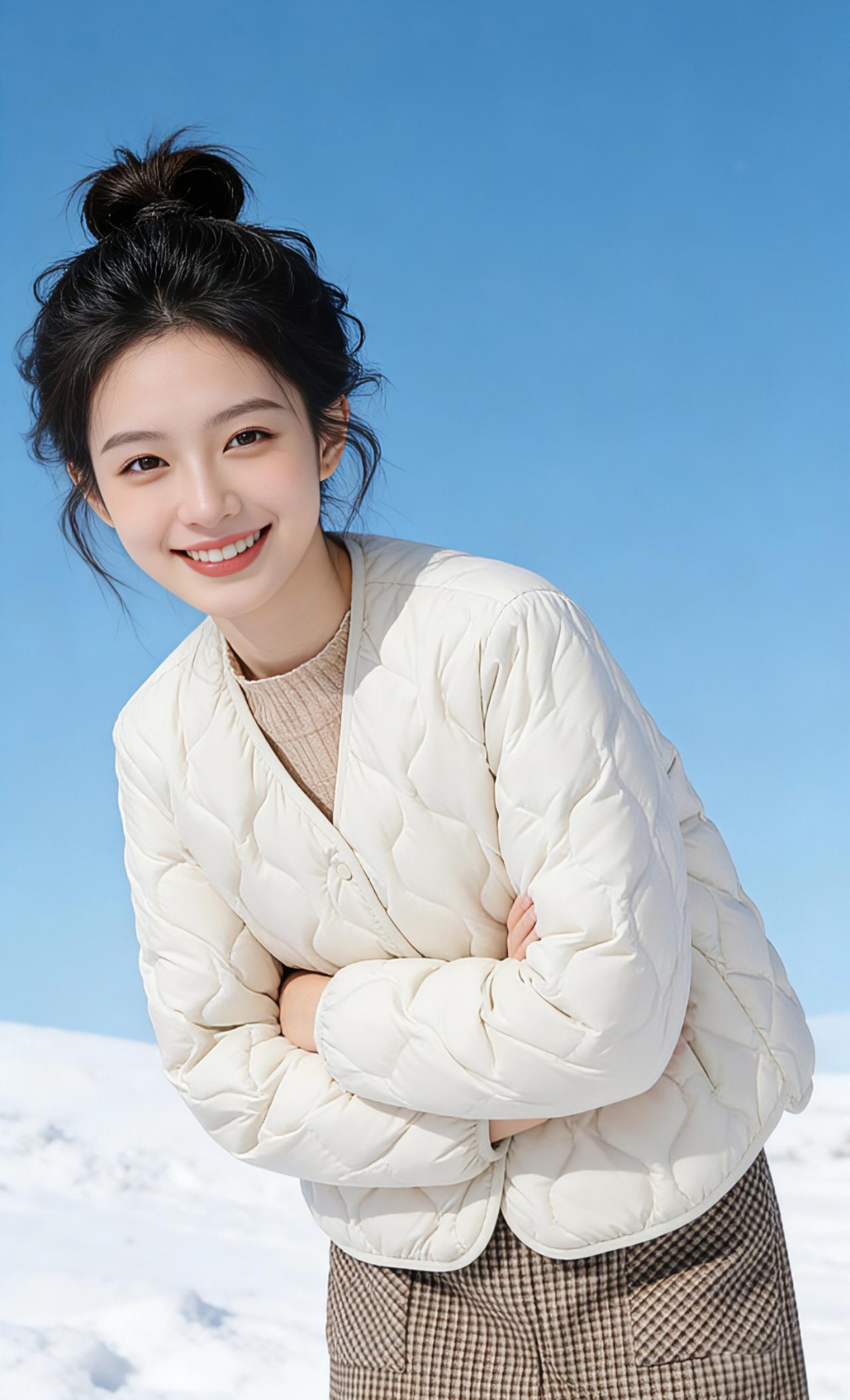 雪日暖歌 雪是冬日写给人间的信笺,落在黛瓦上,积在白墙的檐角,也落在少女蓬松的丸子头梢。她立在院门前,浅卡其色的羽绒服像一片温柔的云,裹住料峭的风。指尖掠过菱形纹路的衣面,仿佛能触摸到阳光被揉进织物的温度。 抬眼时,澄澈的蓝天撞进眼底,和雪地的白交织成最干净的画布。她笑起来,梨涡盛着碎光,抬手拢了拢耳边的碎发,动作轻得像怕惊落枝头的雪。羽绒服的暖意顺着肌理漫开,与颈间黑色高领的绒软相拥,牛仔裤的硬朗中和了裙装的柔,让这一身穿搭恰如其分地嵌在冬日光景里。 另一件米白的羽绒,似把初雪揉进了衣料。她歪头比出剪刀手,裙摆的格纹在雪地上漾开细碎的波;或双臂轻抱,弯腰笑看镜头,蓬松的衣身裹住半肩风,却裹不住满溢的青春气。风掠过雪地,扬起细雪如星,落在衣摆、发梢,与她眼底的亮辉相映成趣。 这是属于冬日的松弛感——不必等一场盛大的雪,不必盼凛冽的风。一件暖融融的羽绒,一方晴好的天,就足以让少女的笑靥,成为雪天里最动人的风景。阳光穿过云层,在羽绒服的菱格纹上跳跃,她站在那里,便是一首关于冬日、青春与暖意的短歌,在天地间轻轻流淌。 高级感穿搭 新年穿搭 冬季穿搭 棉衣棉服