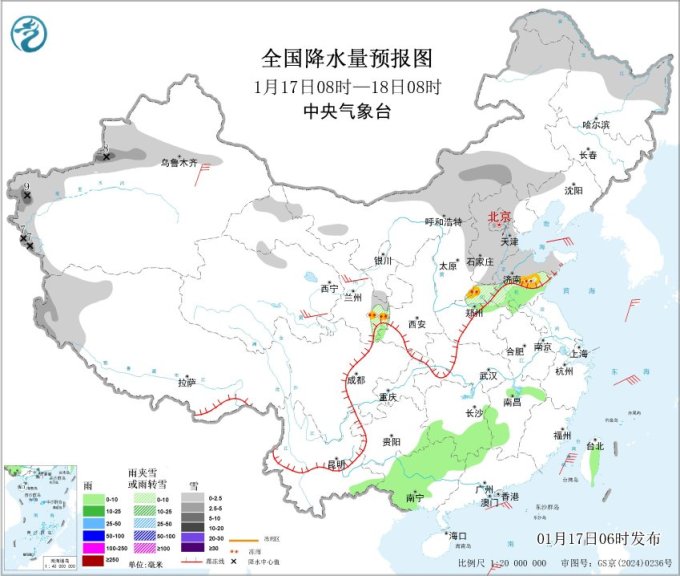另外,中东部地区将迎来入冬以来范围最大、强度最强、冻雨影响最广的雨雪冰冻天气过程。17-18日,华北东部、黄淮等地将有小到中雪或雨夹雪;19日是雨雪最强时段,秦岭—淮河以南地区降水相态复杂,有雨雪及冻雨的转换,陕西南部、山西南部、河南、山东、湖北中西部、安徽等地部分地区有暴雪,河南、湖北、湖南、贵州、重庆等地部分地区有冻雨。
