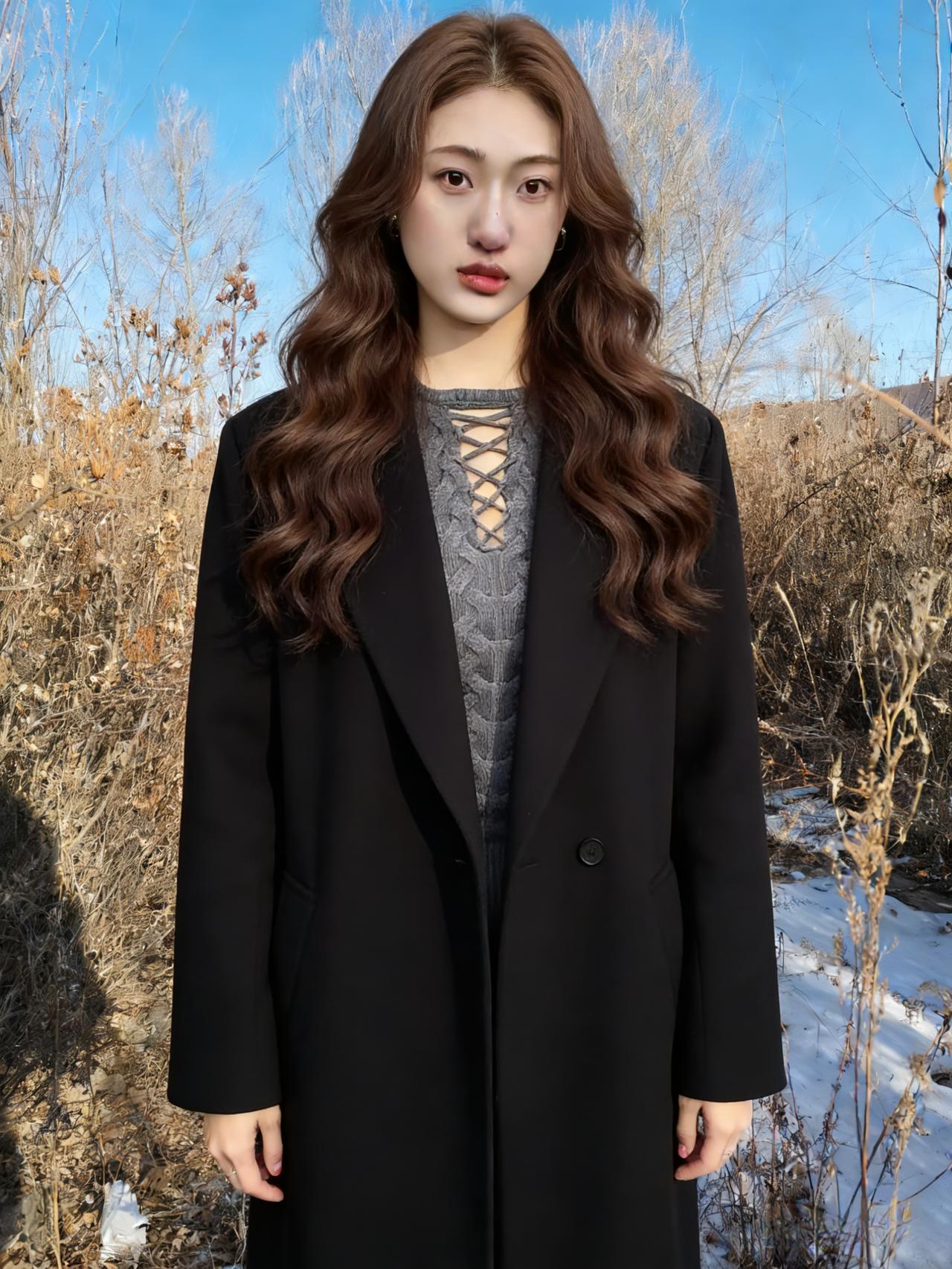 荒郊雪覆径弯弯,衣袂迎风意自闲。 莫道冬林无暖色,一身风骨胜春山。