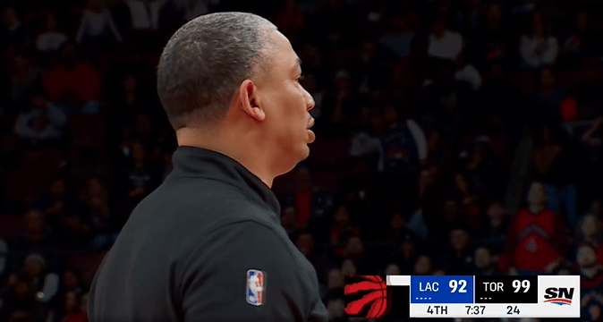 比赛第四节,迪克补扣得手,猛龙又打出8-0拉开分差,泰伦-卢喊下暂停。