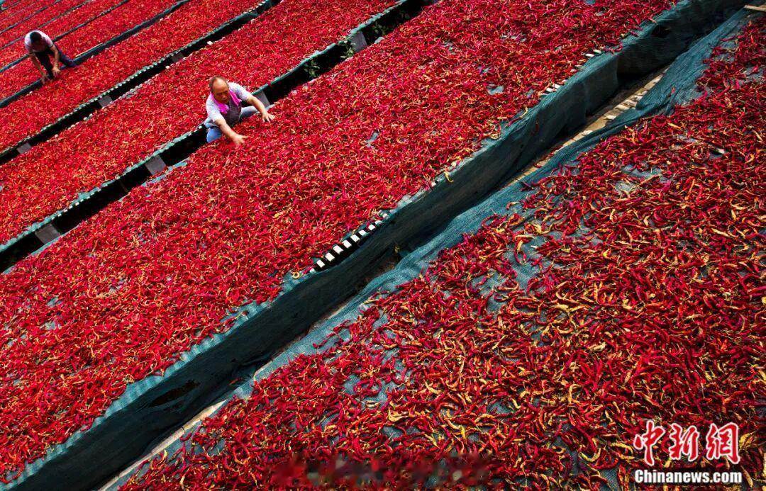 冀南平原上,连片的辣椒田如红色海洋翻涌——细长的羊角椒紧紧扒着枝头荡来荡去,油亮的皮肤晒得通红。