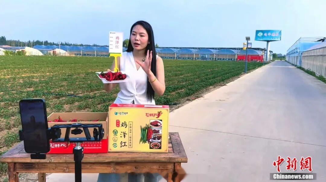 图为鸡泽县椒农正在直播卖辣椒。田杏娇摄