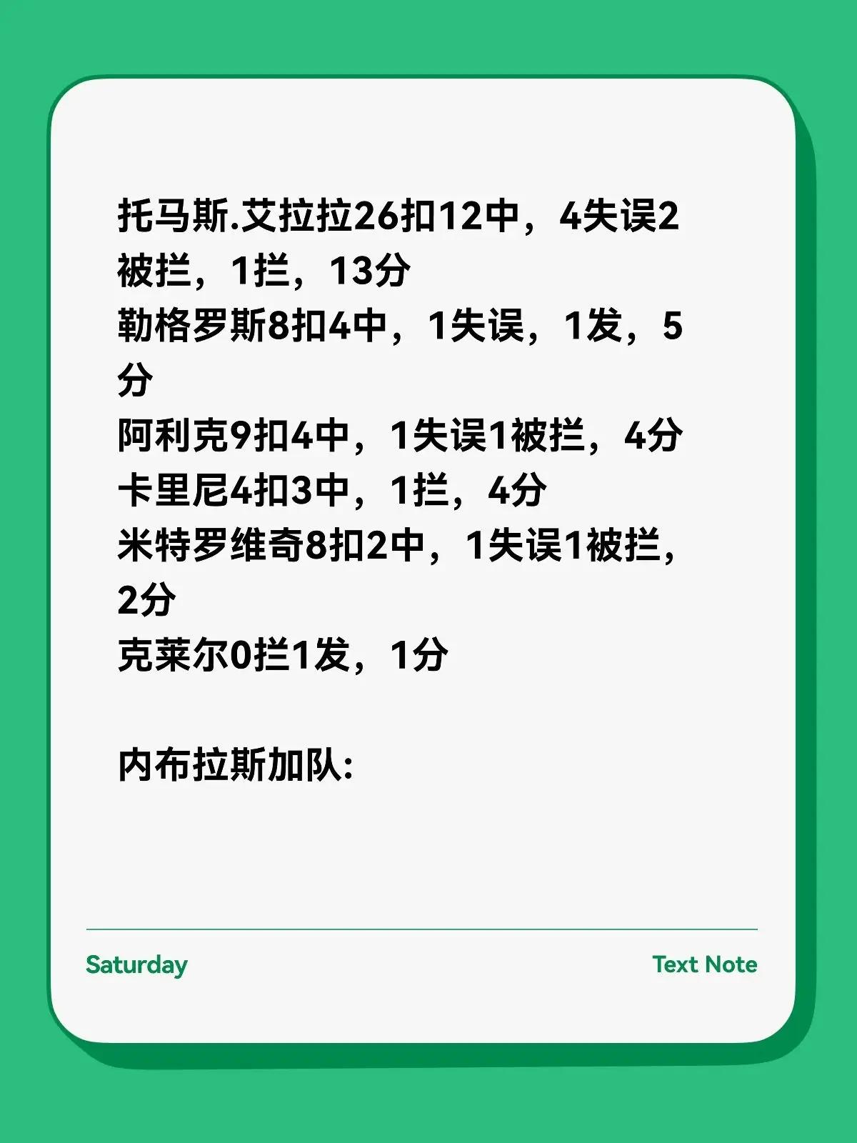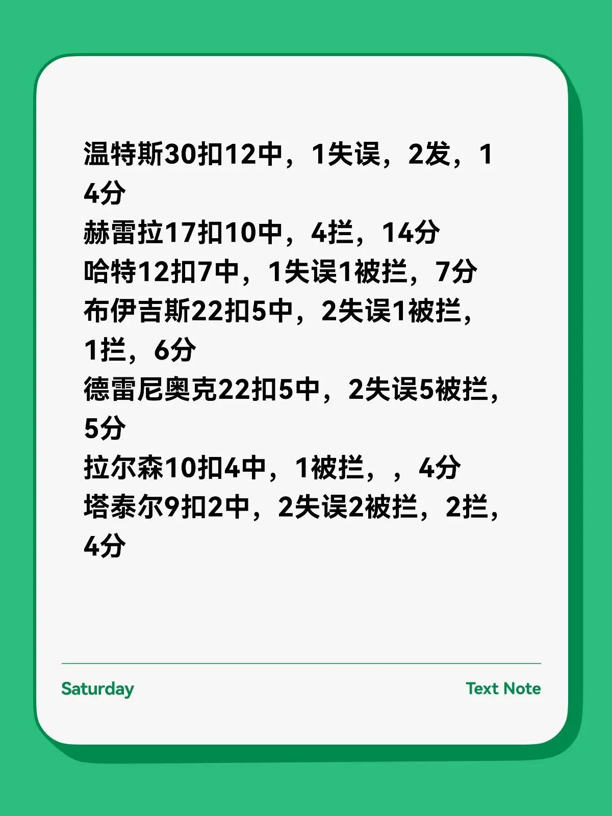 麦迪逊3-1内布拉斯加 龚翔宇16分。2026年美国🇺🇸第二届女排职业联赛LOVB第二周麦迪逊3-1内布拉斯加25-15 22-25 25-23 25-21麦迪逊队:施瓦岑巴赫23扣14中,2失误1被拦,3拦,17分A.哈克34扣12中,1失误2被拦,3拦1发,16分龚翔宇24扣9中,2失误3被拦,4拦3发,16分托马斯.艾拉拉26扣12中,4失误2被拦,1拦,13分勒格罗斯8扣4中,1失误,1发,5分阿利克9扣4中,1失误1被拦,4分卡里尼4扣3中,1拦,4分米特罗维奇8扣2中,1失误1被拦,2分克莱尔0拦1发,1分内布拉斯加队:温特斯30扣12中,1失误,2发,14分赫雷拉17扣10中,4拦,14分哈特12扣7中,1失误1被拦,7分布伊吉斯22扣5中,2失误1被拦,1拦,6分德雷尼奥克22扣5中,2失误5被拦,5分拉尔森10扣4中,1被拦,,4分塔泰尔9扣2中,2失误2被拦,2拦,4分菲茨莫里斯8扣2中,1失误1被拦,1拦,3分卡罗尔9扣2中,1失误1被拦,1拦,3分迪耶科玛4扣0中,1拦,1分