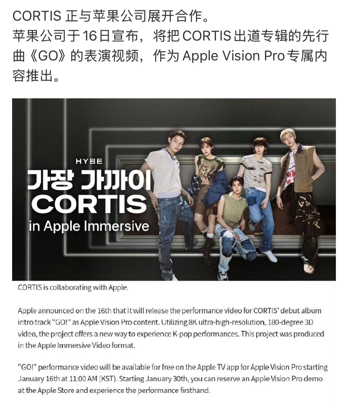 CORTIS将与苹果公司展开合作 这是要完美复刻了 NewJeans 的成功之路吗?