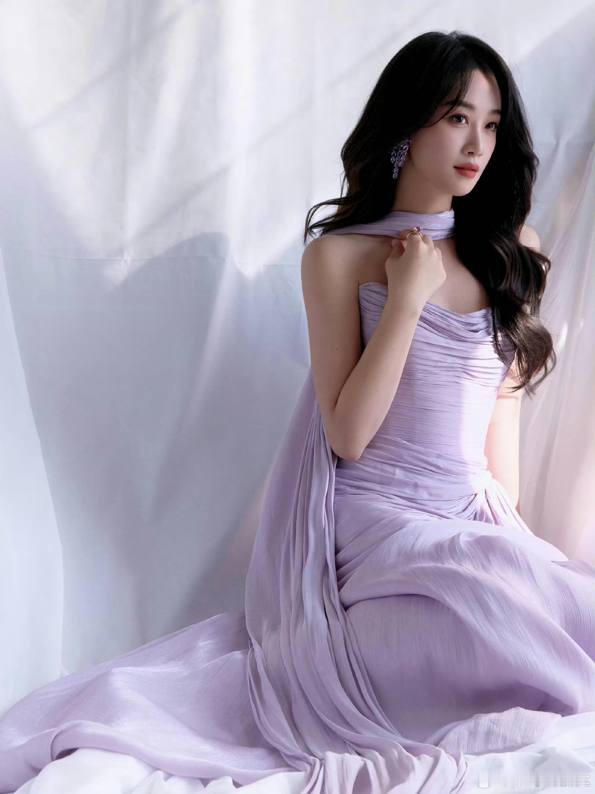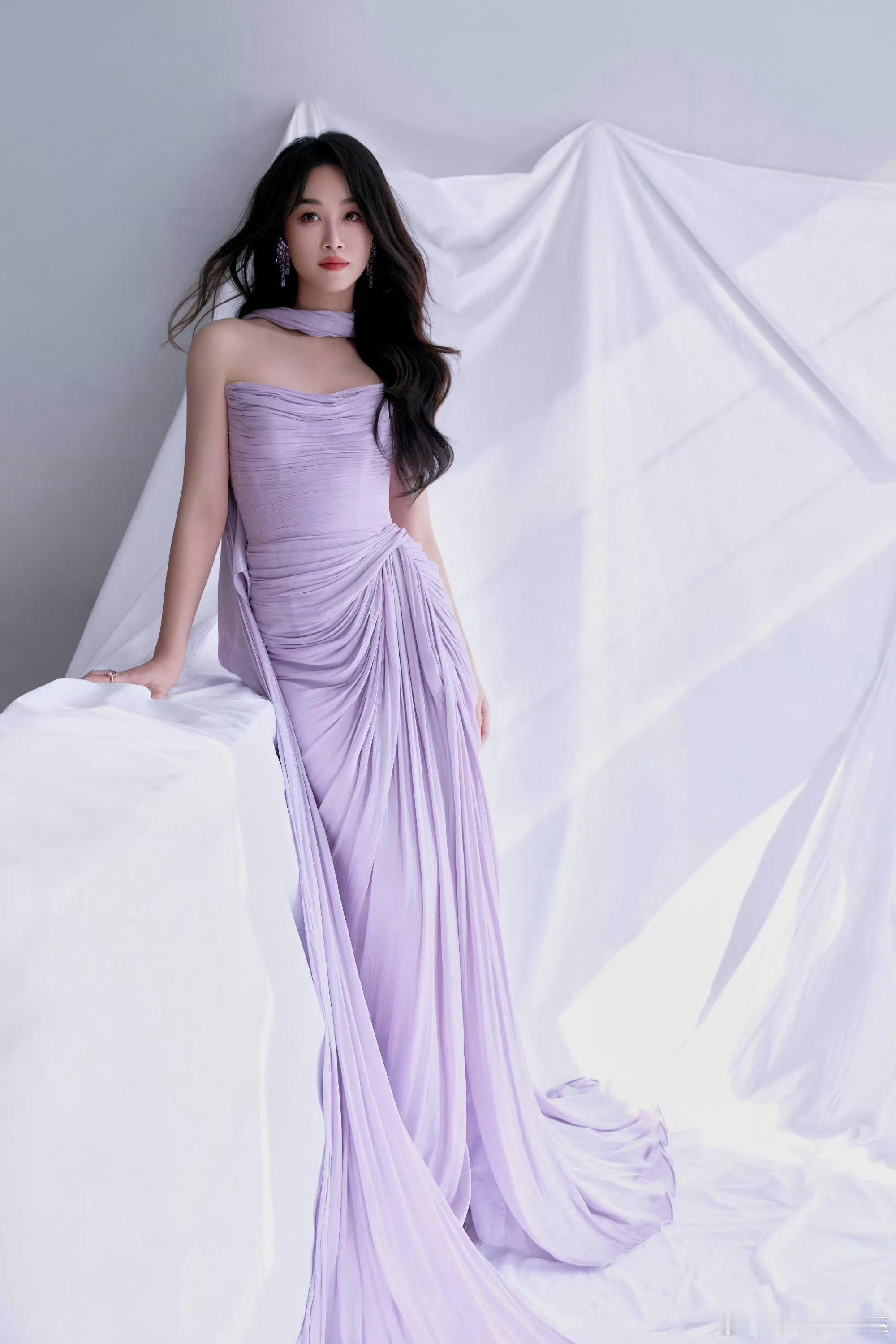 蓝盈莹 蓝得发紫 紫色纱裙垂落尽显腰臀比,蓬松卷发添氛围感,抹胸设计露肩颈线,蓝盈莹把优雅灵动穿在身上,一眼心动!