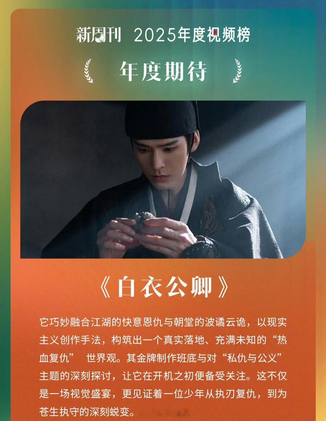 龚俊《白衣公卿》成为新周刊2025年度视频榜年度期待剧集,明知道这部剧很有质感,
