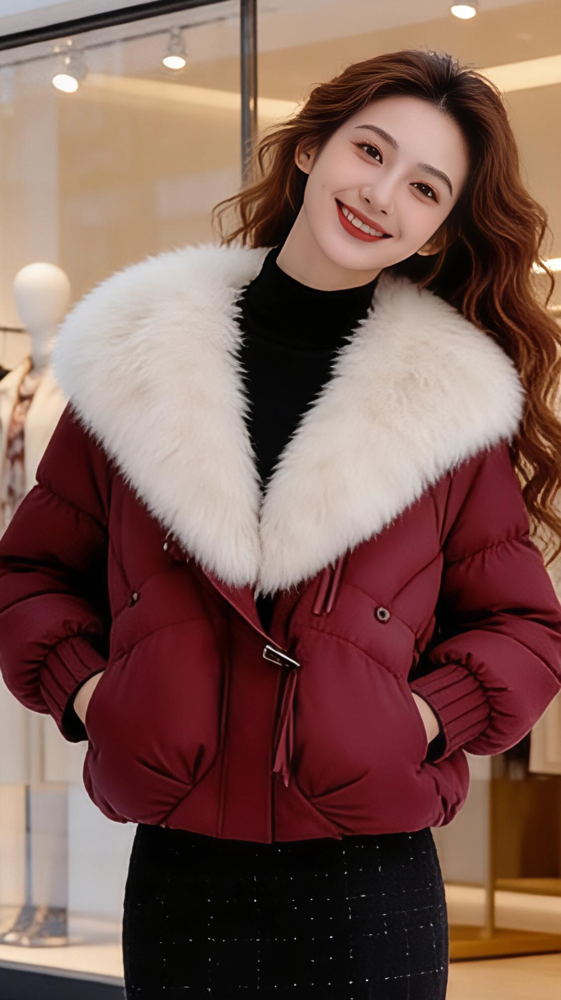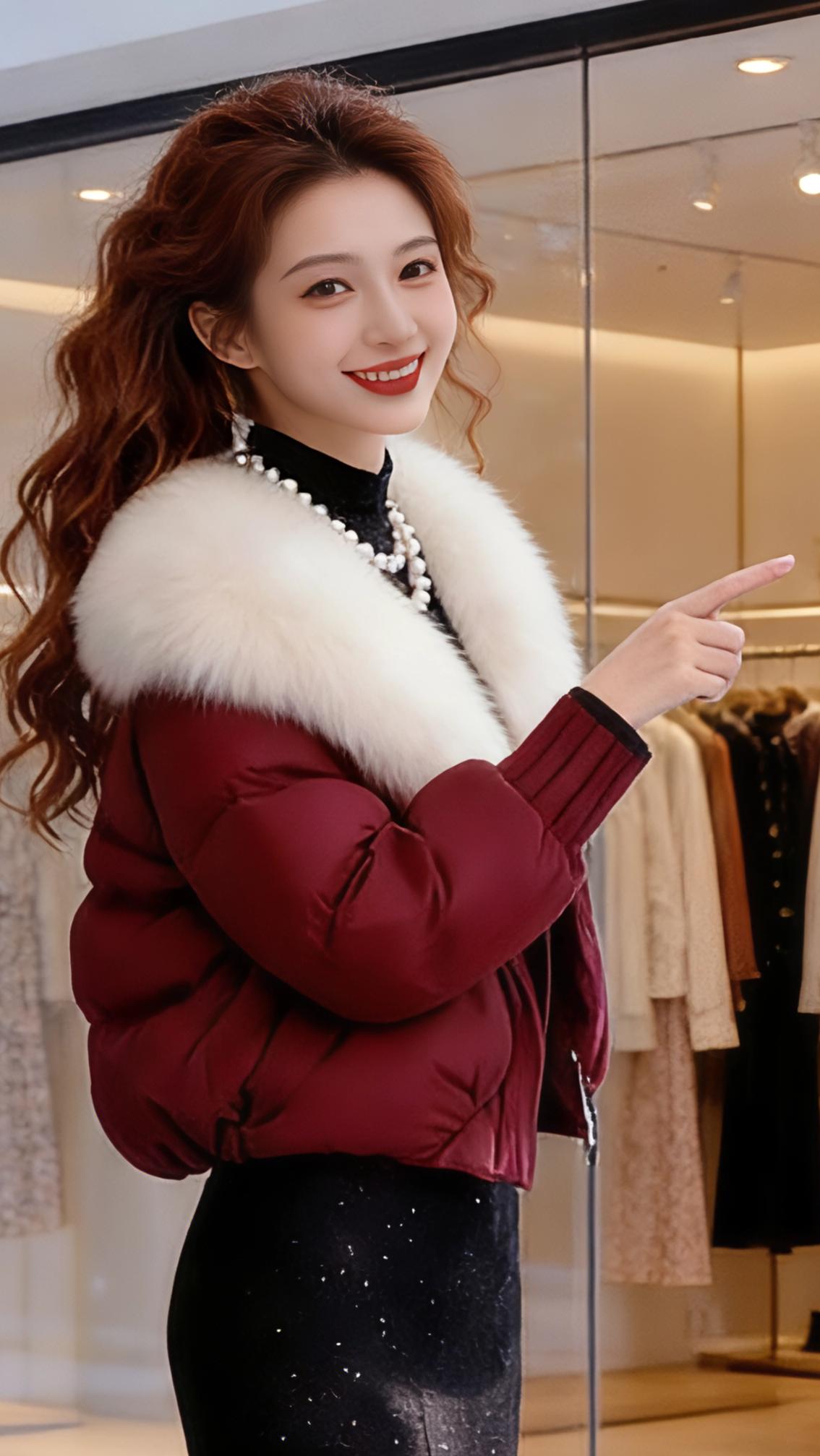 红袄映雪 深冬的雪,落在城市橱窗的檐角,也落在她走过的街面。那件酒红色的短袄裹着一身暖意,如同一团跳动的火焰,在素白的天地里格外鲜明。 领口的白狐毛领蓬松柔软,像把冬日的云絮揉成了温暖的模样,衬得她卷发蓬松的脸庞愈发红润。黑底银星的长裙垂坠着,随着步履轻晃,像把夜空中的星子裁成了裙摆。她抬手轻扶毛领时,腕间的珍珠项链泛着温润的光;侧身提裙时,衣摆的褶皱里便漾起细碎的星光。 橱窗里的暖光漫出来,和雪色交织成温柔的滤镜。她笑着走过玻璃幕墙,身影在暖黄的灯影里明明灭灭。这红袄、白绒、黑裙,在落雪的街头谱成一首流动的诗,让凛冽的冬风都有了缱绻的温度。 高级感穿搭 新年穿搭 冬季穿搭 棉衣棉服