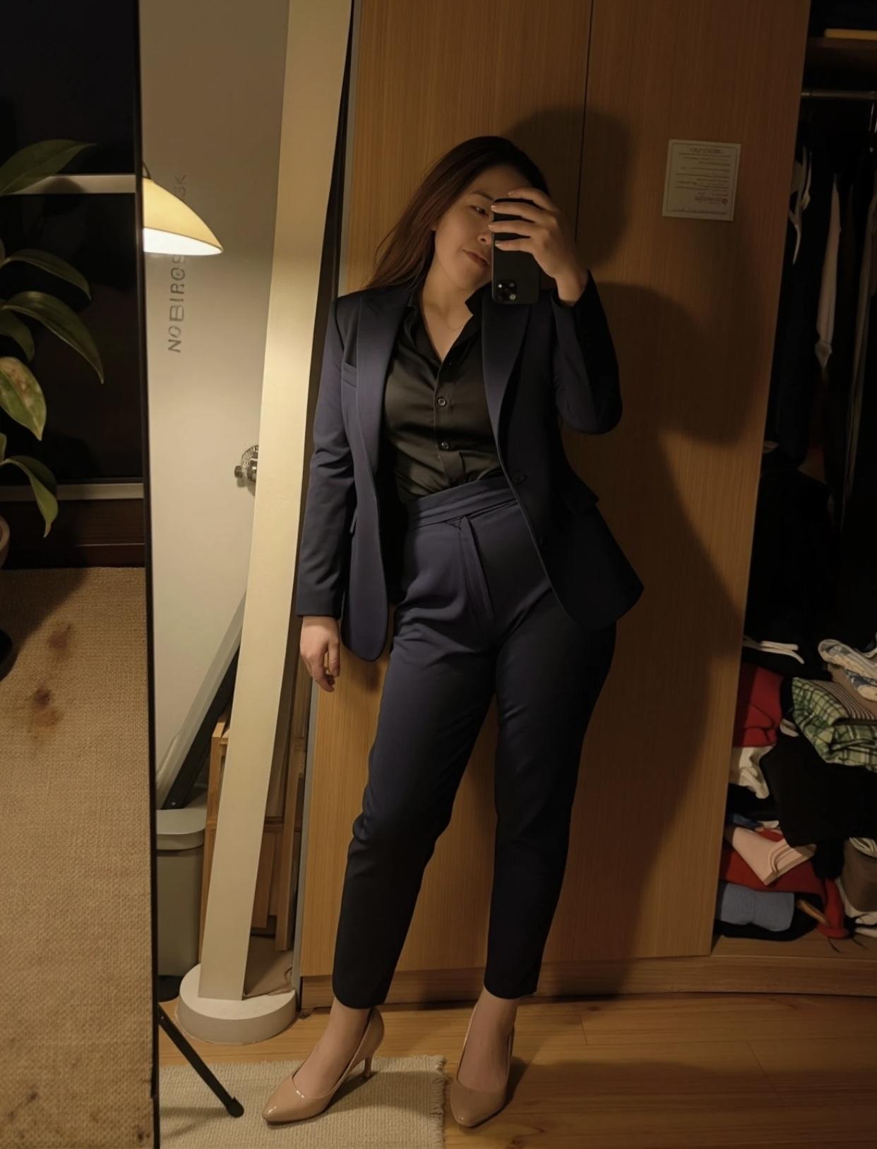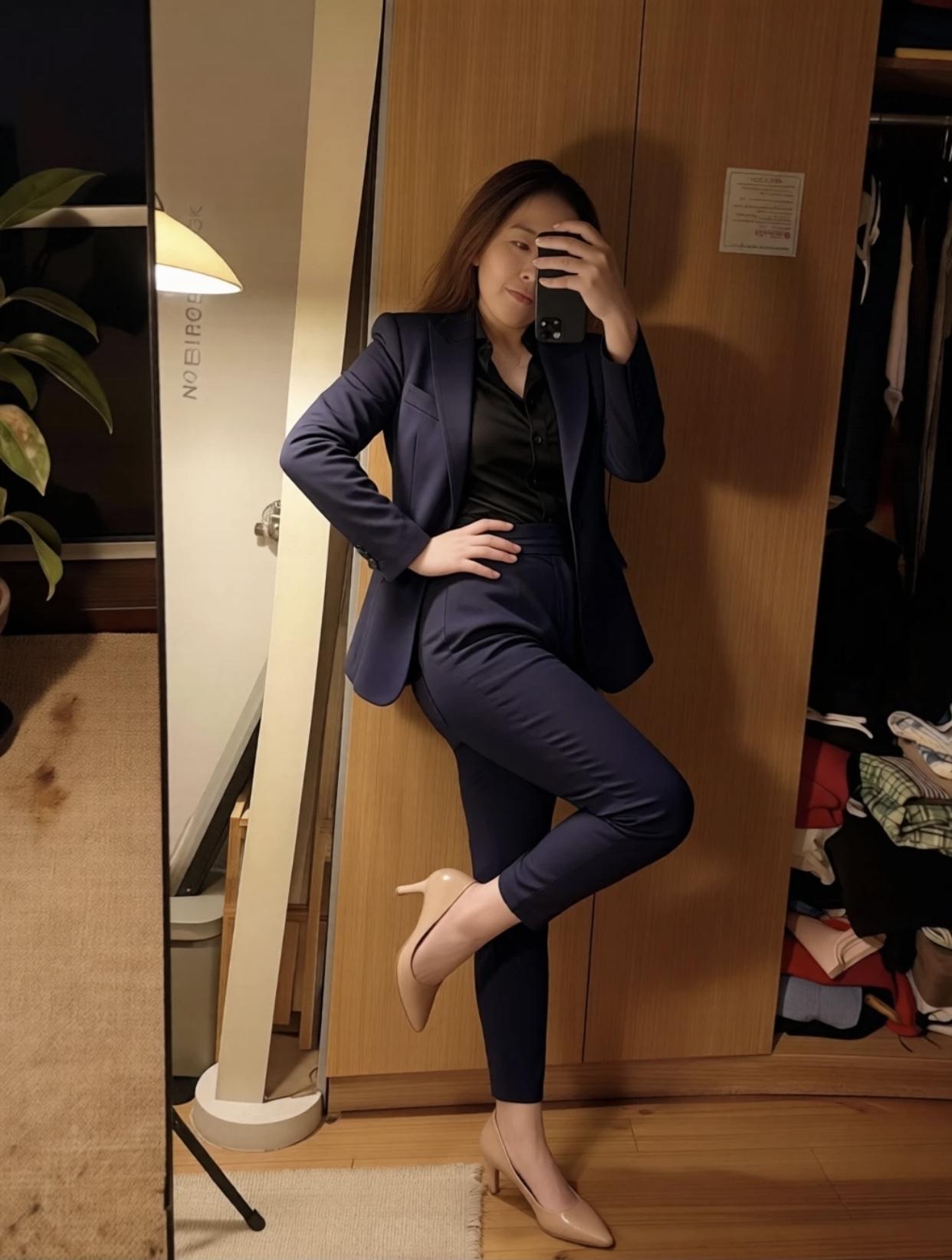 上班通勤怎么穿才有气质选择经典基础款的服装,如白衬衫、黑西裤,不容易出错。