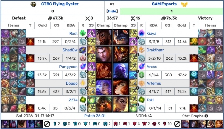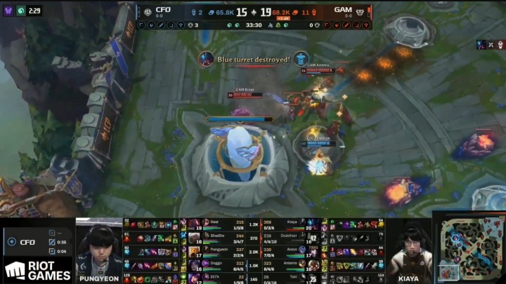 Shadow首局杰斯数据1/4/2,次局狼母3/4/7;次局比赛CFO一度拿下大龙准备翻盘,但被GAM运营换家偷掉水晶,最终CFO0:2不敌GAM。