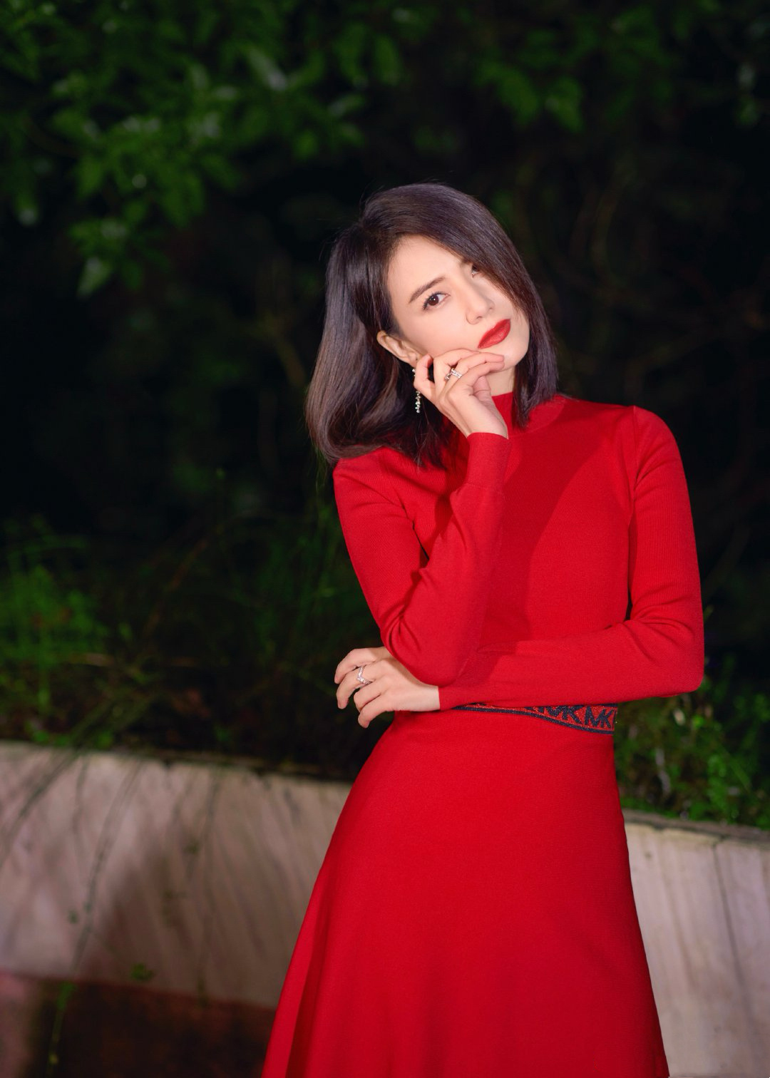 一袭正红针织连衣裙优雅大气,高领设计衬出精致锁骨,收腰剪裁勾勒曼妙曲线,红唇与红裙相映成趣,尽显明艳动人的东方韵味。高圆圆合集高圆圆 一找工作全是研究生