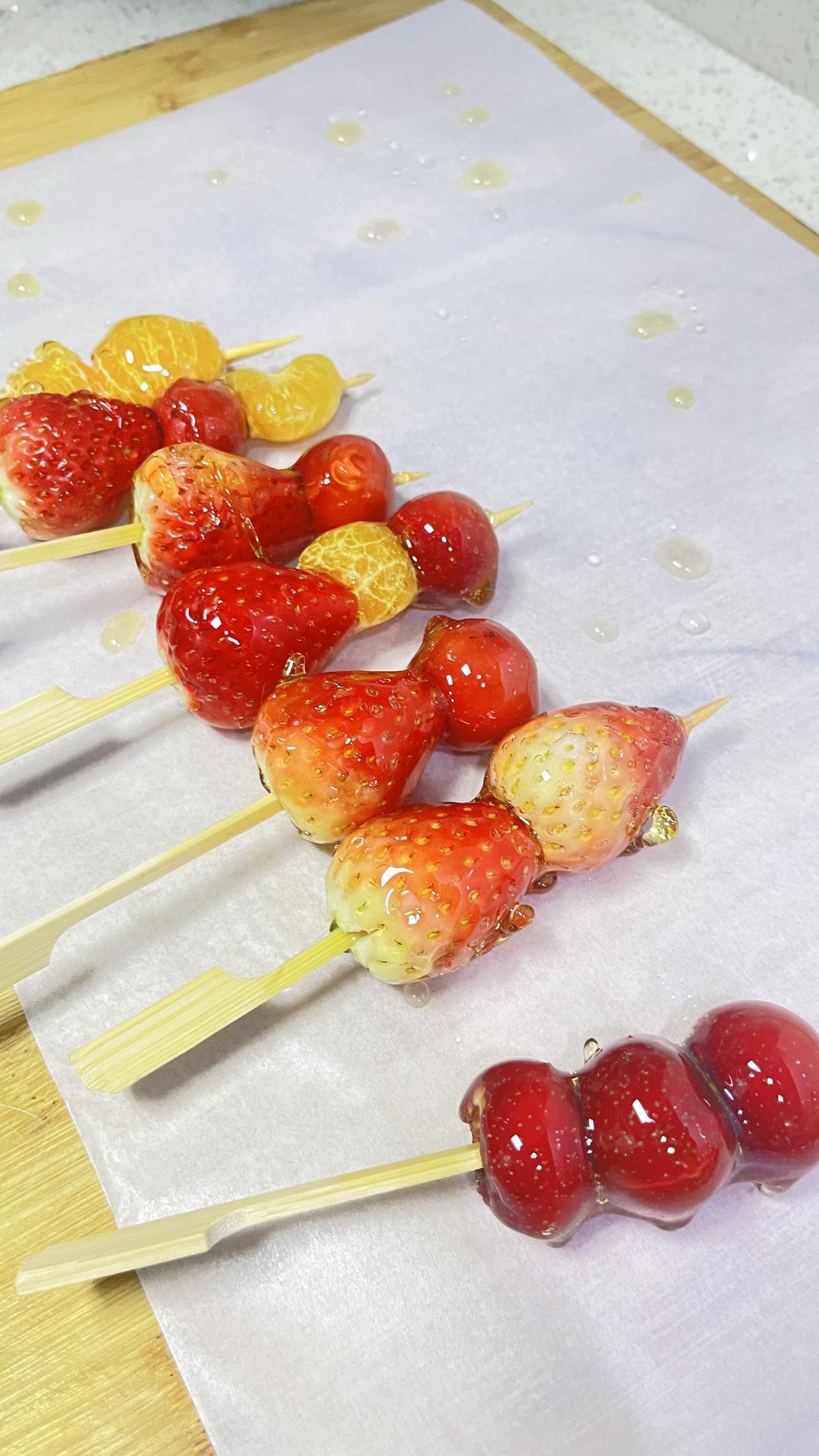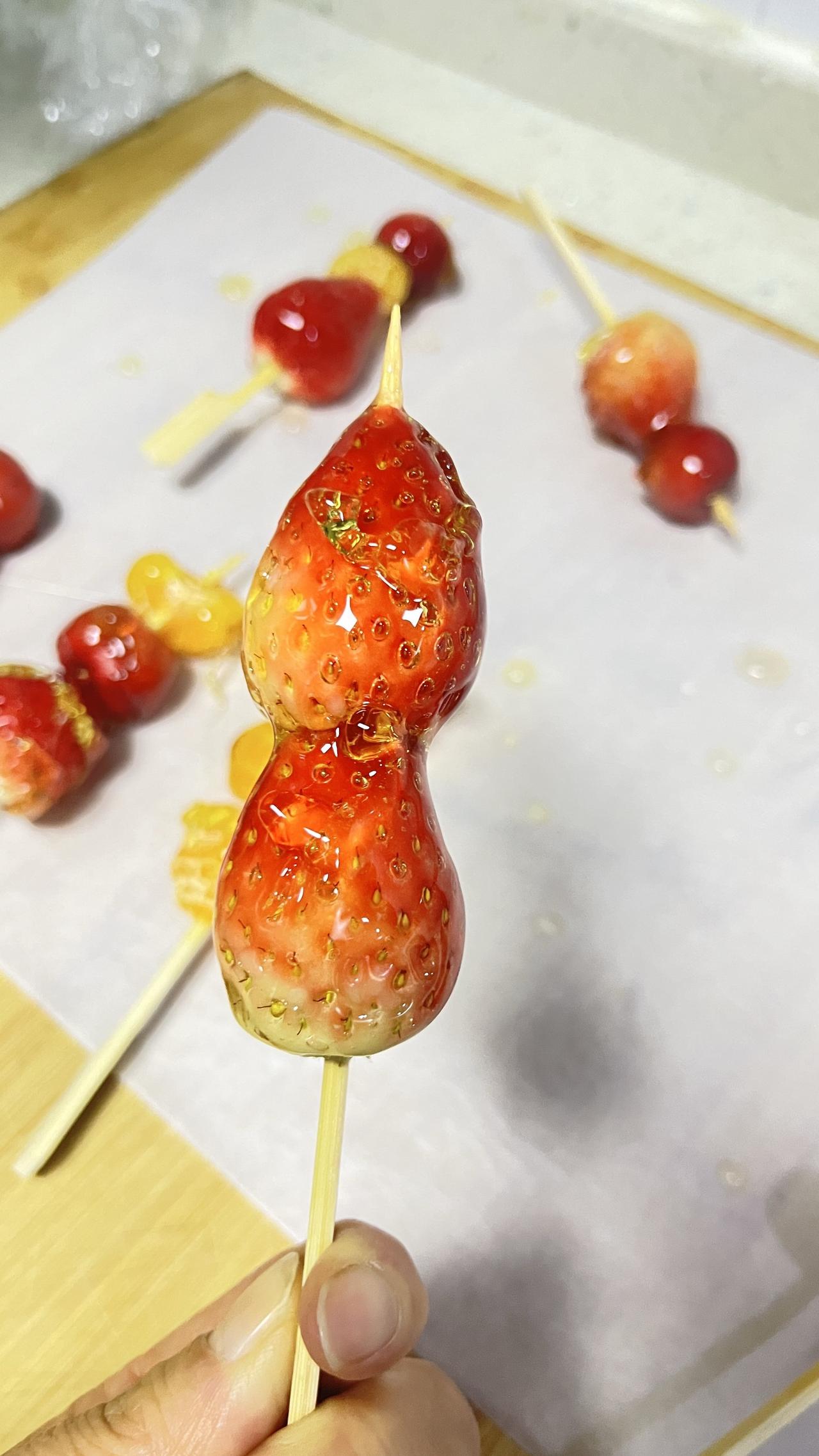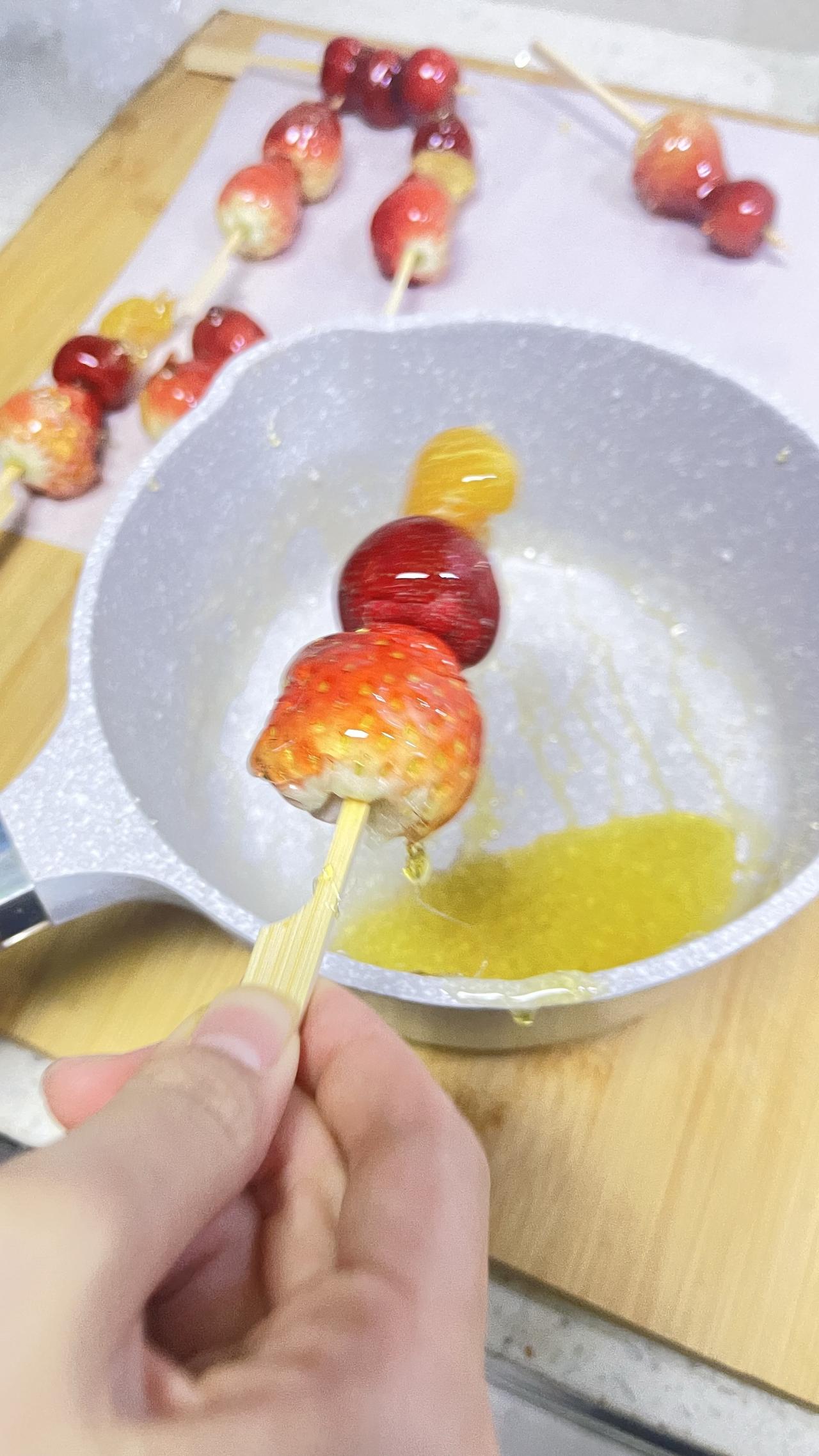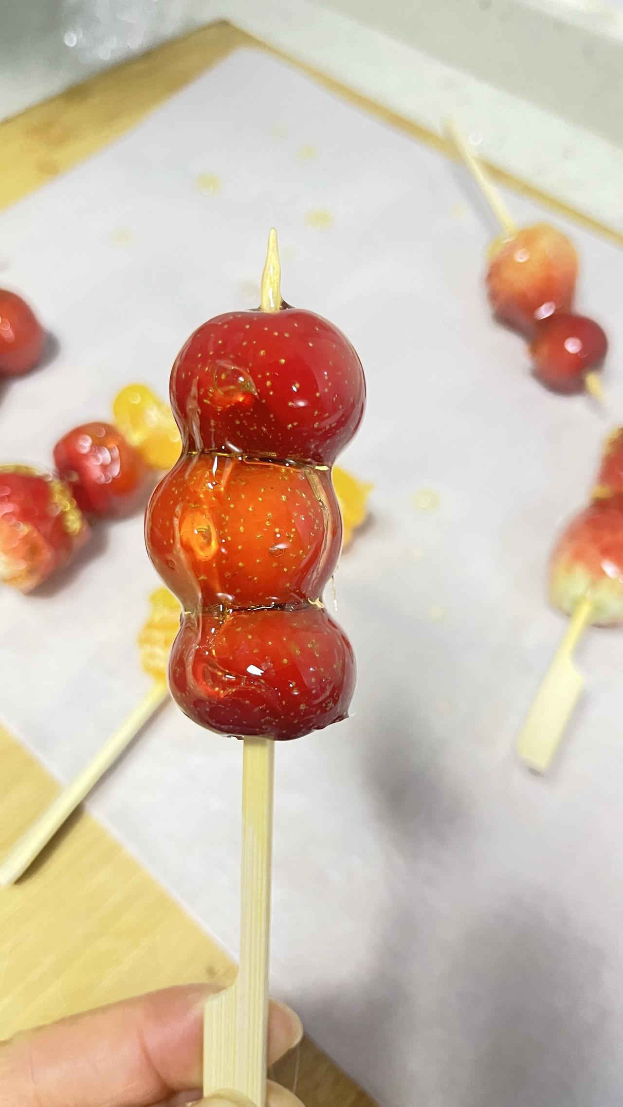 和女儿第一次做冰糖葫芦,成功。咬在嘴里脆脆的,好吃😋。唯一缺点是蘸糖太厚一层了,下次看能不能改进动手自己做美食仪式感满满