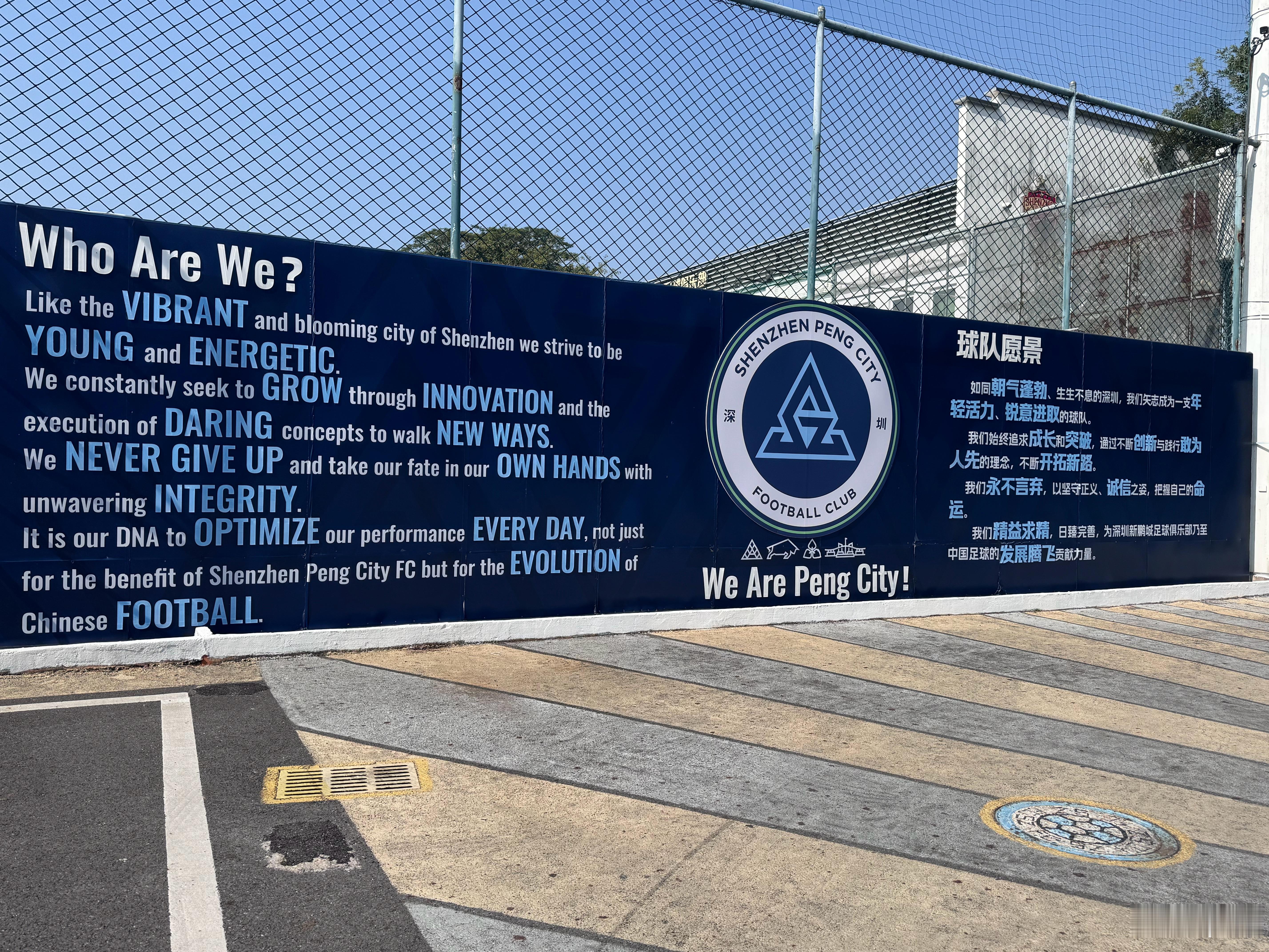 深圳新鹏城 前天去丽湖基地采访阿代米时,看到了这块蓝色的围挡,上面的中英文宣言瞬间吸引了我的目光。一边是充满力量感的英文:“Who Are We?”“NEVER GIVE UP”“take our future in our OWN HANDS”,直接把深圳年轻朝气生机盎然的城市基因刻进了球队的DNA里。另一边是中文愿景,“朝气蓬勃、生生不息”“通过不断创新与践行敢为人先的理念,不断开拓新路。”最戳人的是那句“我们永不言弃,以坚守正义、诚信之姿,把握自己的命运”。这样的表态显得格外有分量。深圳新鹏城用一整面墙告诉所有人:他们要做的不只是在中超立足下去,还要用深圳模式走出一条新路。中超联赛深圳新鹏城