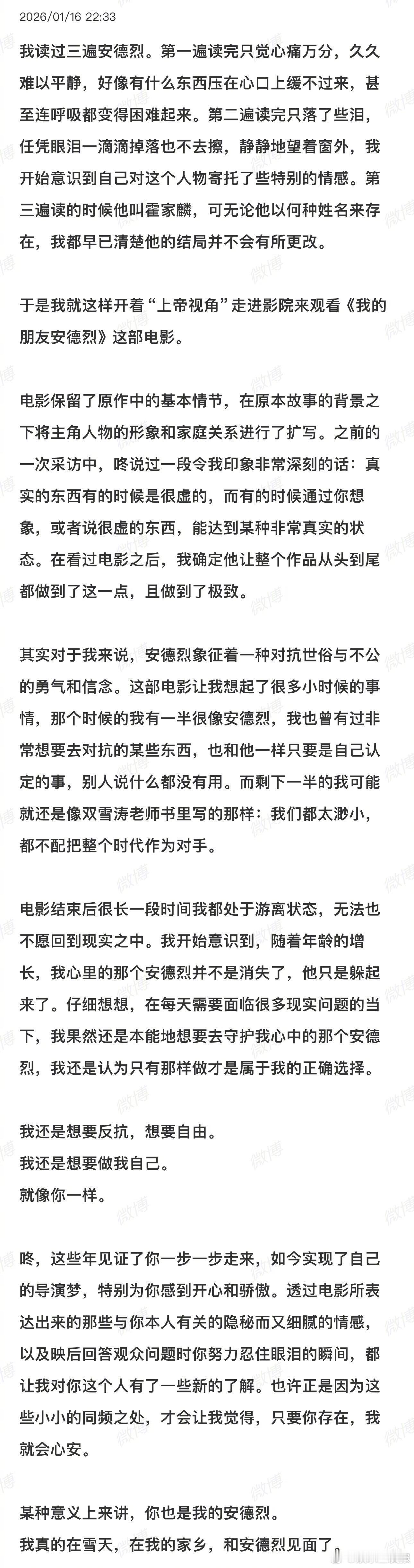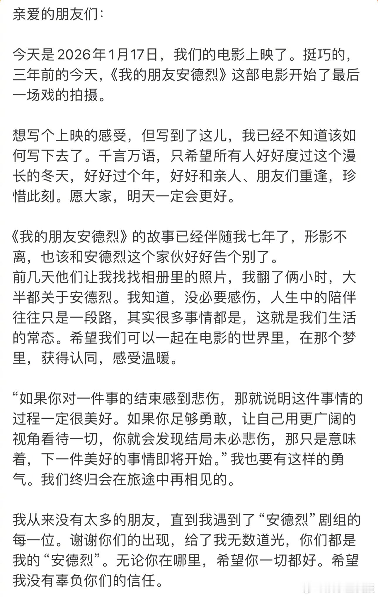 董子健好细腻的文字 一大早被董子健的文字暖到了🥹文字有温度,镜头才有力量,能感