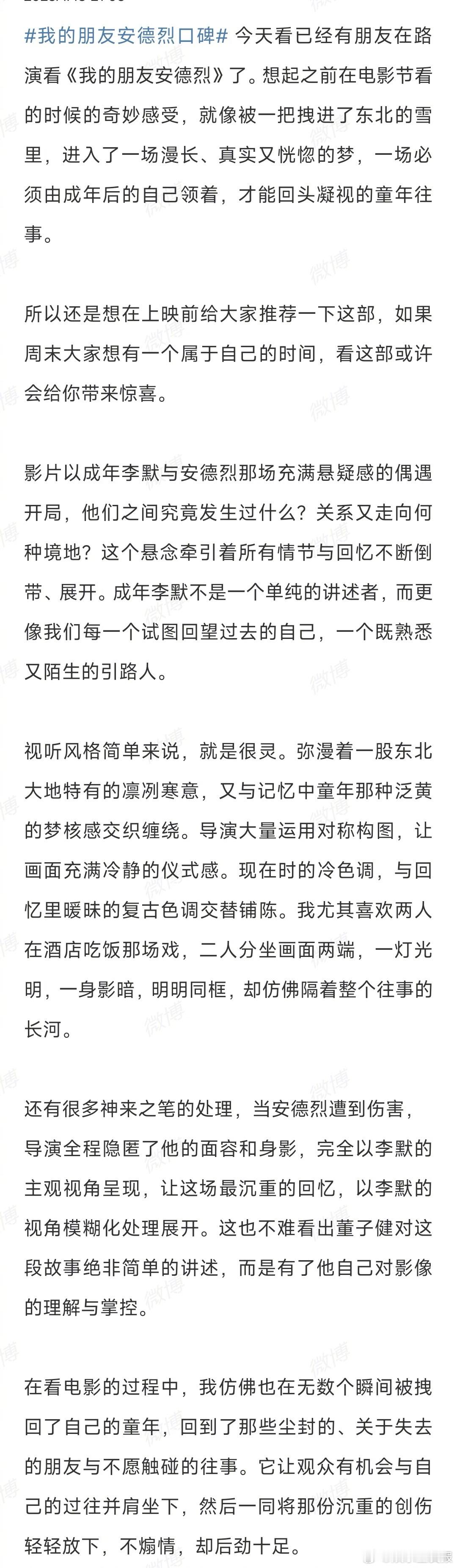 董子健好细腻的文字 一大早被董子健的文字暖到了🥹文字有温度,镜头才有力量,能感觉到他满满的真诚和用心…..看反馈感觉电影也是我喜欢的类型!会去大荧幕感受感受的~