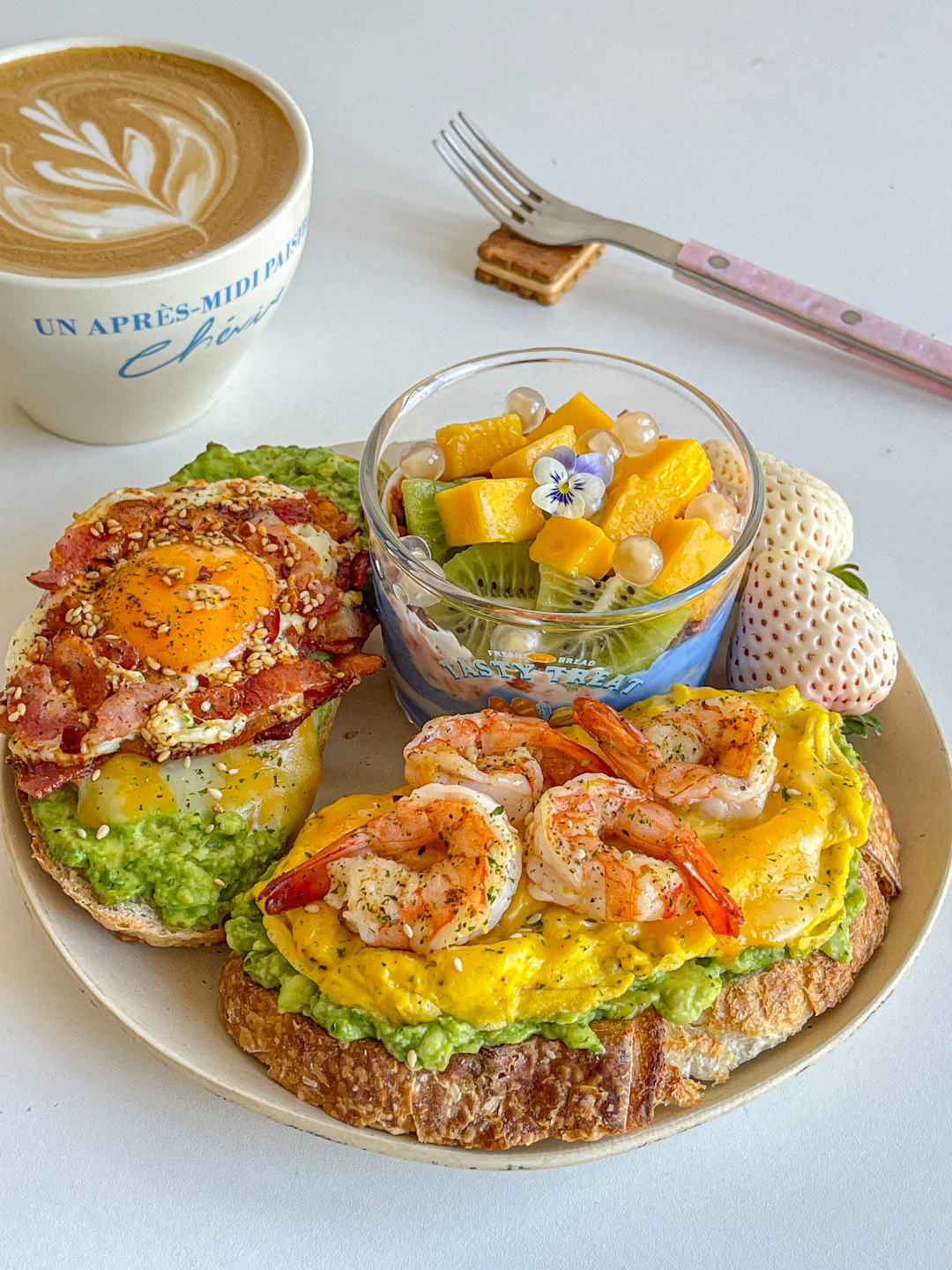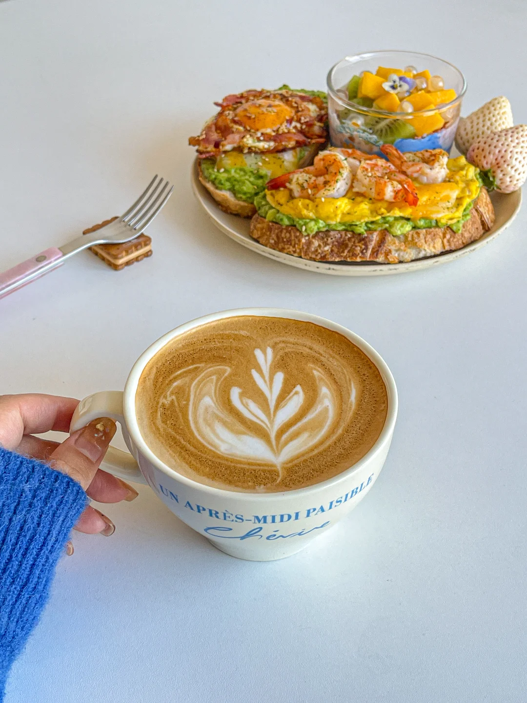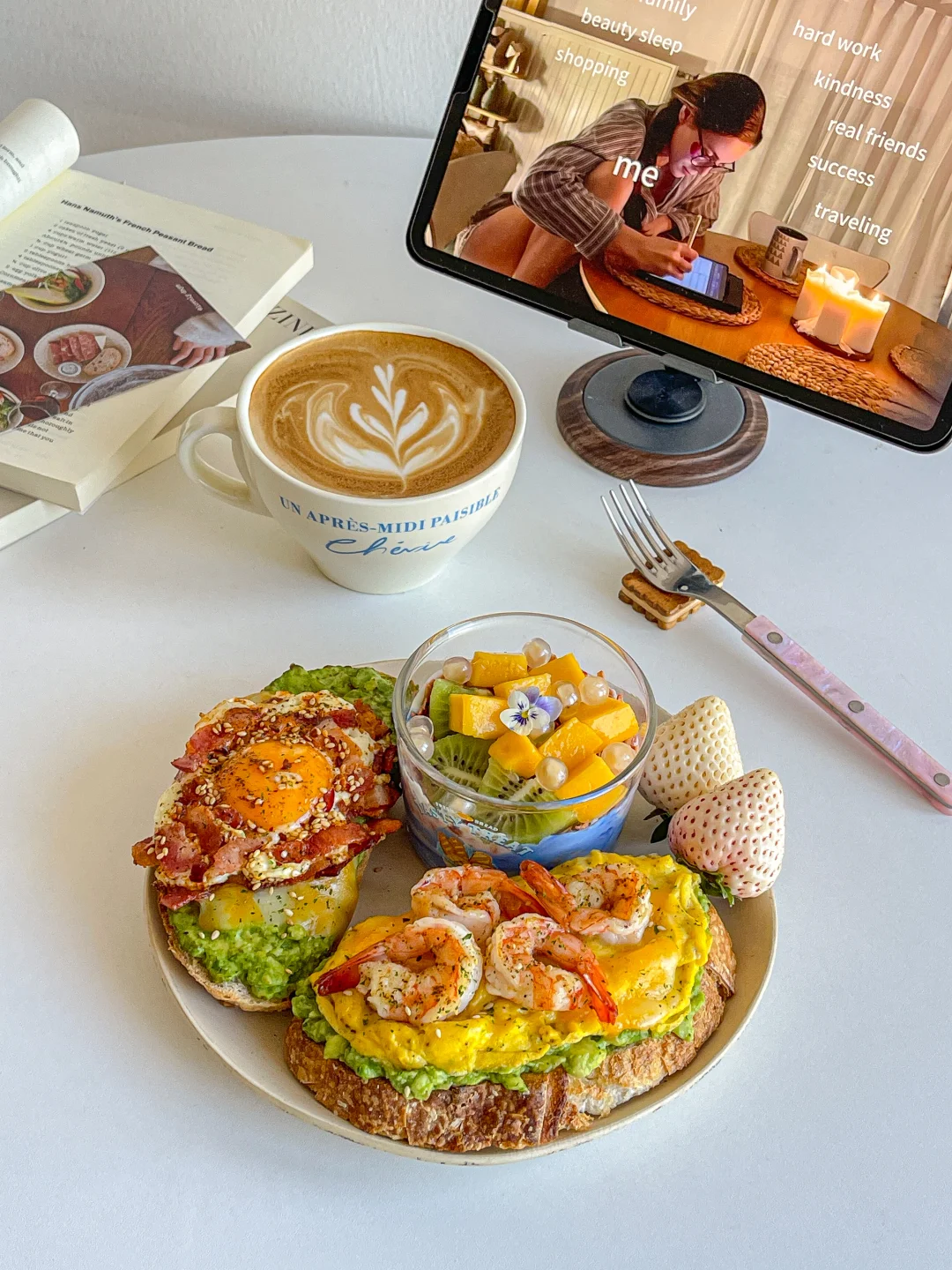 漂亮brunch🍳欧包三明治酸奶杯🥑热拿铁☕️