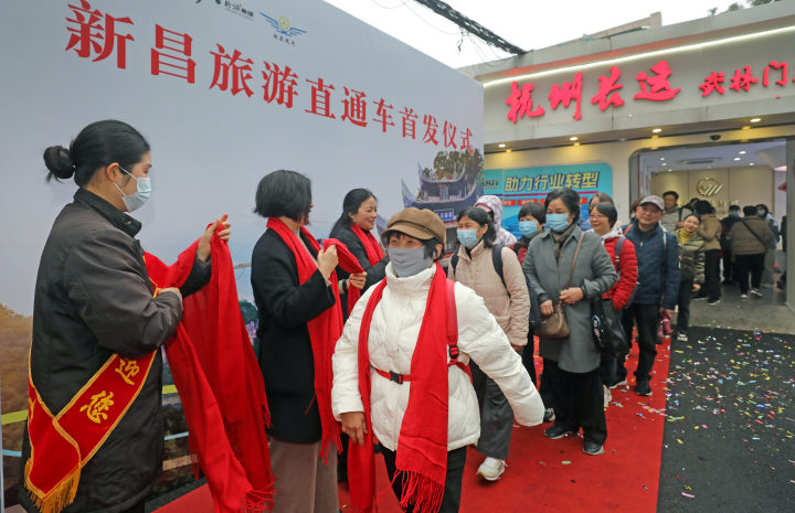 1月17日上午8:30,杭州至新昌大佛寺的旅游直通车从杭州长运武林门驿站首发,至下午3:00原路返回。