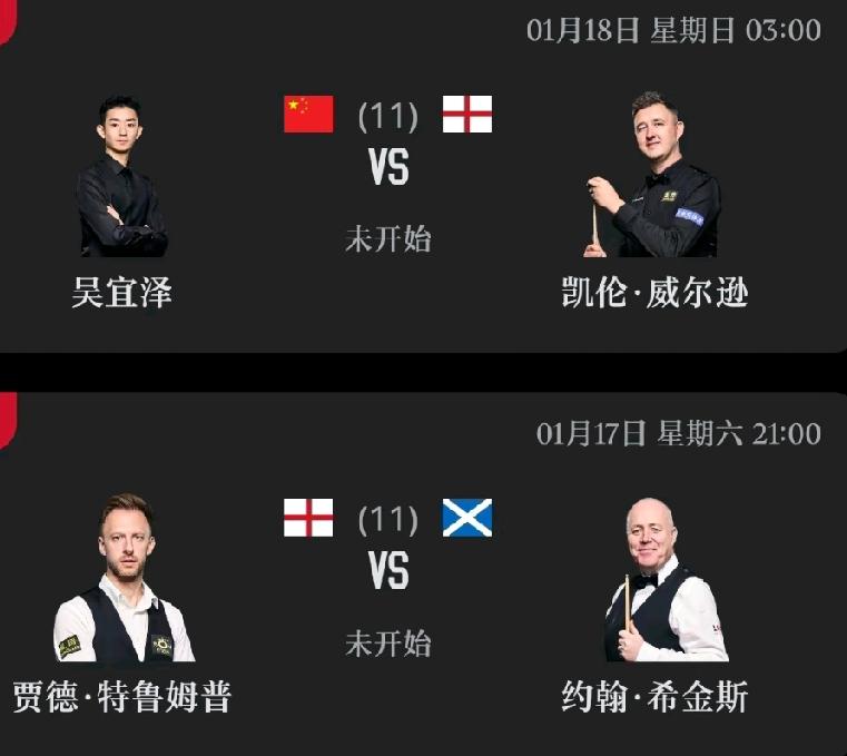 大师赛不虚此名,首轮比赛八个6-2已足够神奇,也是大师赛历史上的第一次。 没想到,另一个第一次接踵而至,不是中国德比--吴宜泽6比0横扫肖国栋。 而是,大师赛第一次出现,四个年龄段球员,同时闯入半决赛,也算是一次四世同堂。 1、70后--年过半百的希金斯。 2、80后--正处壮年的特鲁姆普。 3、90后--意气风发的囧哥凯伦·威尔逊。 4、00后--高大俊朗的吴宜泽。 半决赛的对位,也很有看点,80后血拼70后,00后挑战90后, 这样,又产生了另一个有意思的第一次,那就是,在斯诺克拼杀多年的特鲁姆普与希金斯,竟然是首次在大师赛交手。 双方共交手55次,特鲁姆普28胜26负1平。而特鲁姆普最近对希金斯已经取得八连胜,这场半决赛,被安排在1月17日21:00。 1月18日03:00 ,吴宜泽挑战凯伦·威尔逊,“最强00后”与“最强90后”的直接对决, 双方交手记录:凯伦·威尔逊2胜0负。 你看好哪两位杀入决赛?我看老最年长的与最年轻的,那就是希金斯与吴宜泽。