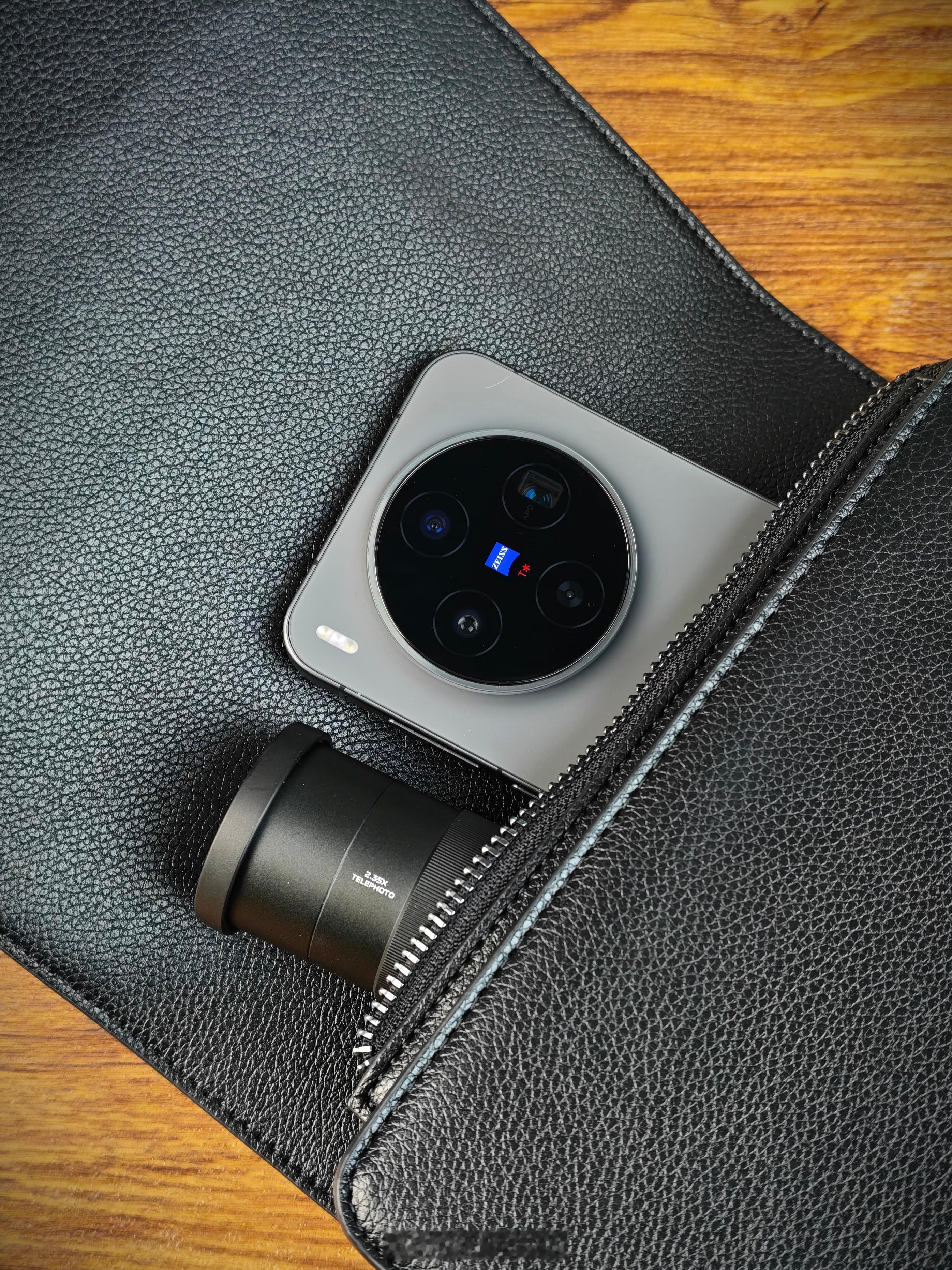 vivo还给摄影套装做了一个包,正好可以装下手机和增距镜套装,而且质感很不错vi