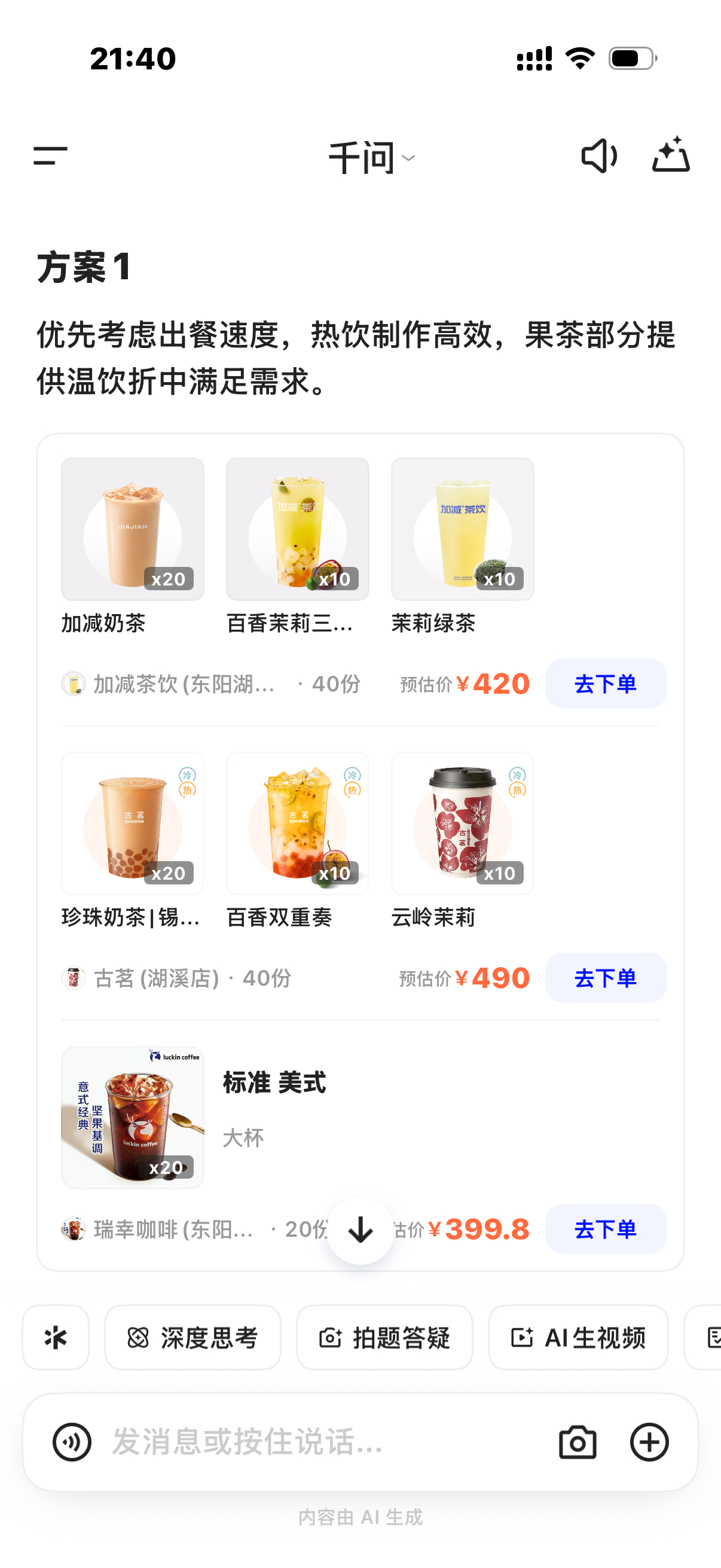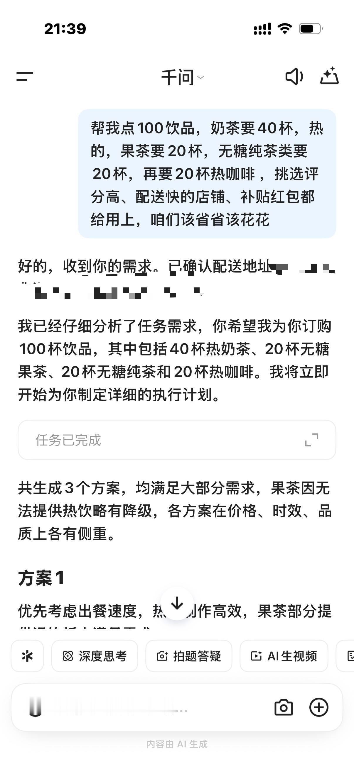 是谁又为别人的老板流下羡慕的口水?原来是我!刷到庆姐在《武则天》杀青现场,用千问AI一句话点了100杯饮品的视频,本打工人的DNA狠狠动了!语音指令细致到甜度温度,连“该省省该花花”都考虑到了,千问任务助理秒速选店、算钱、用红包,付款一气呵成。这哪是点外卖啊,这分明是“赛博济世”!庆姐用实际行动证明:大方和高效,在AI时代可以兼得。一句话,搞定百人份的快乐,还顺便秀了一波顶级科技生活力~千问上线能干活的任务助理外卖已经进化成这样了吗娱乐圈现在都在用ai点外卖了吗