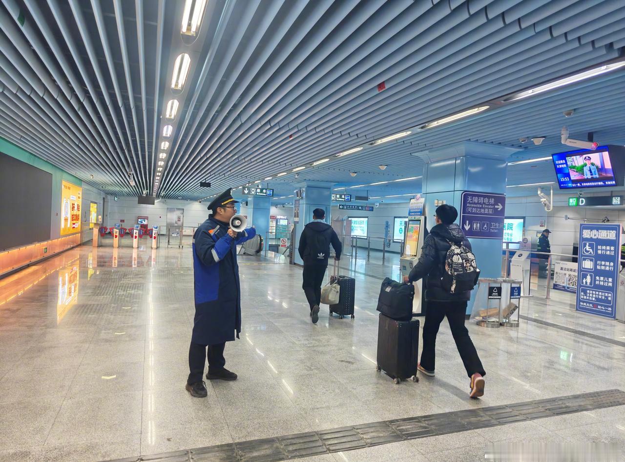 降雪来临前,我们已提前检查设备、备足融雪盐、防滑垫、除雪铲等物资。 雪落即行动!对出入口、楼梯、站台、通道等易滑区域高频巡查、及时清雪,铺设防滑地垫、撒布融雪剂,同步设置“小心地滑”警示标识,全力降低滑倒风险。 电扶梯、屏蔽门、闸机、直梯等客运设备逐一巡检,保障运行平稳。 工作人员全员在岗,加强站台及换乘通道客流引导,广播循环播放雪天出行提示,守护您安全有序乘降~