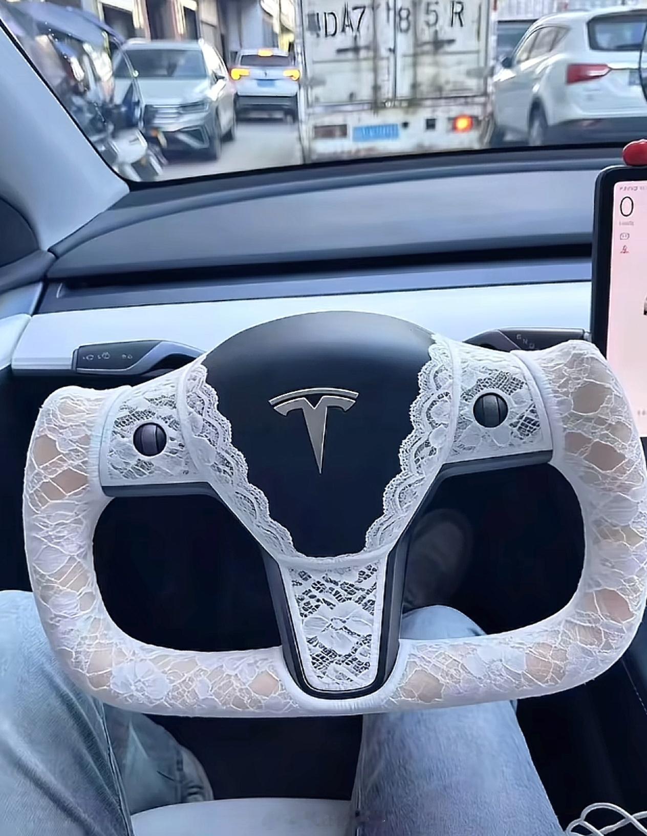这蕾丝方向盘套,在冬天开车总不冻手了吧?