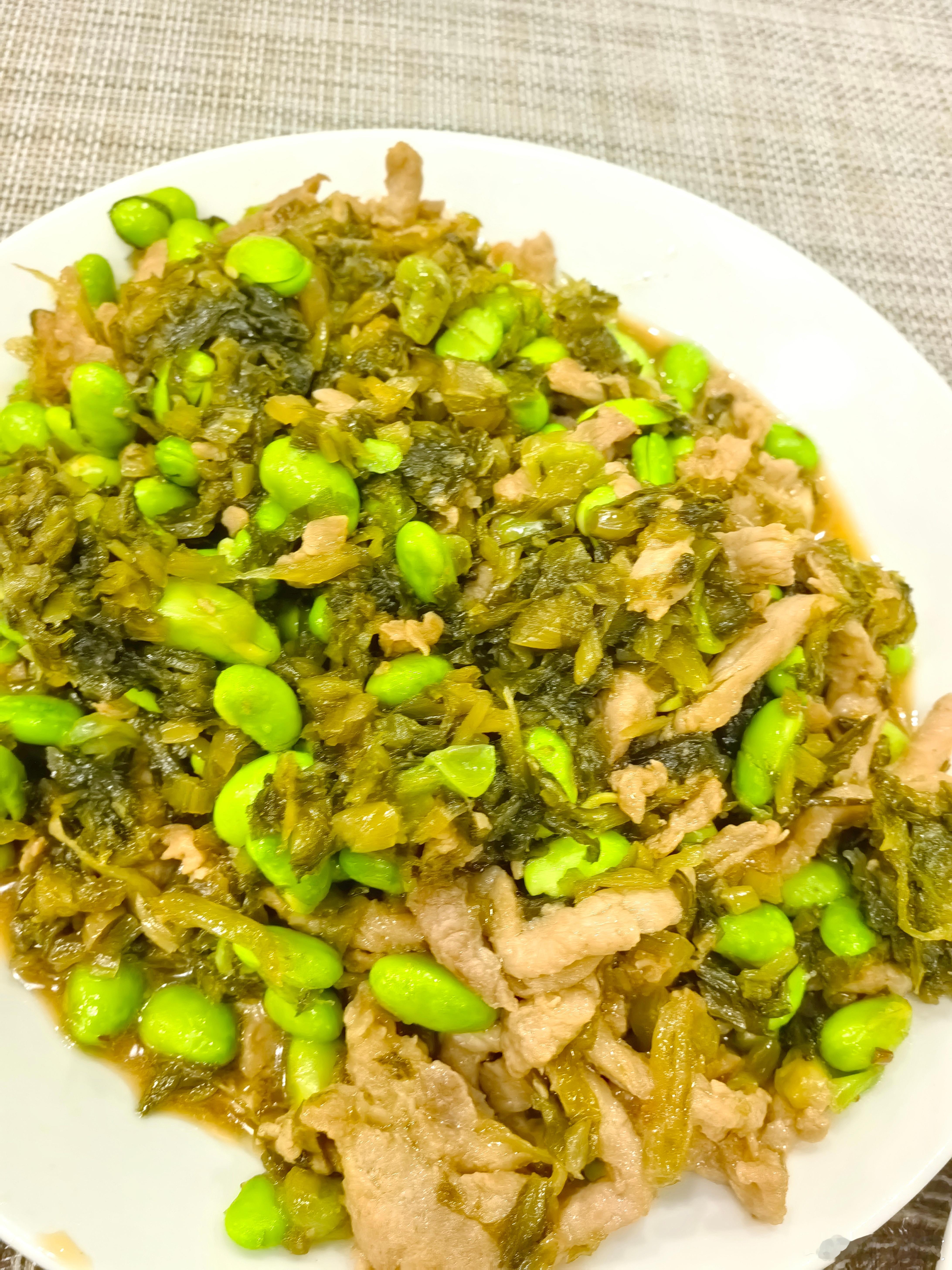 小夜一餐每日一餐分享北极甜虾咸菜毛豆子肉丝酱鸭舌蒸牛肉大白菜杭白菜 上海