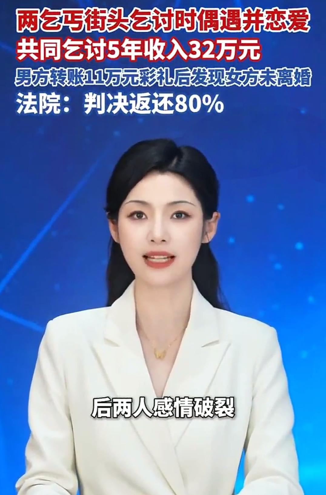 两人乞讨相恋5年挣32万分手陷纠纷 两乞丐街头乞讨时偶遇并恋爱,共 同乞讨5年收入32万元,男方转账11万元彩礼后发现女方未离婚,法院:判决返还80% 谁又能想到,这样的他们竟然也能演绎出一段“爱情故事”?这不是电影情节,而是真实发生在我们身边的“乞讨恋人”——他们用五年的时间,挣到了32万元,却在爱情的终点陷入了令人扼腕的法律纠纷。 这段故事像极了现代社会的缩影:贫穷、无助、希望与失望交织在一起。两个乞讨者在街头偶遇,从最初的同情与陪伴,到逐渐的依赖与信任,五年的时间,他们用行动证明了“爱情”在极端环境下的坚韧。然而,谁曾想到,最后的结局竟然如此令人唏嘘——一场彩礼背后的“真相”揭开了隐藏的秘密,也让这段感情走向了终点。 他们挣的钱虽不多,却代表着他们对未来的渴望与努力。男方转账11万元作为彩礼,仿佛是他们对未来的一次承诺。然而,当法院审理这场纷争时,却发现女方未离婚,所谓的“爱情”不过是一场误会还是隐藏的算计?在这个过程中,我们看到了人性的复杂,也看到了社会的无情。有人说,贫穷是爱情的绊脚石,但也有人相信,真正的爱情应超越物质的束缚。 这场纠纷,究竟折射出什么?是法律的公正?还是人性的善恶?更重要的是,它让我们反思:在这个充满诱惑与陷阱的社会,什么才是真正值得我们珍惜的?或许,答案并不简单,但这段故事告诉我们,无论身处何种境地,诚信与尊重永远是最基本的底线。不要让金钱蒙蔽了我们的双眼,也不要让虚假的“爱情”成为最后的遗憾。 故事的背后,是无数像他们一样的普通人,或许也曾梦想过一份真挚的感情,或许也曾为了未来拼尽全力。我们希望,他们的经历能唤醒更多人的警觉,也希望社会能给予更多理解与帮助。毕竟,每个人都值得被善待,每段感情都应得到尊重。 你怎么看这段“街头爱情”的终局?是悲剧的结尾,还是另一段新生活的开始?留言告诉我,让我们一起为这个社会的温暖与正义发声。乞丐街头乞讨