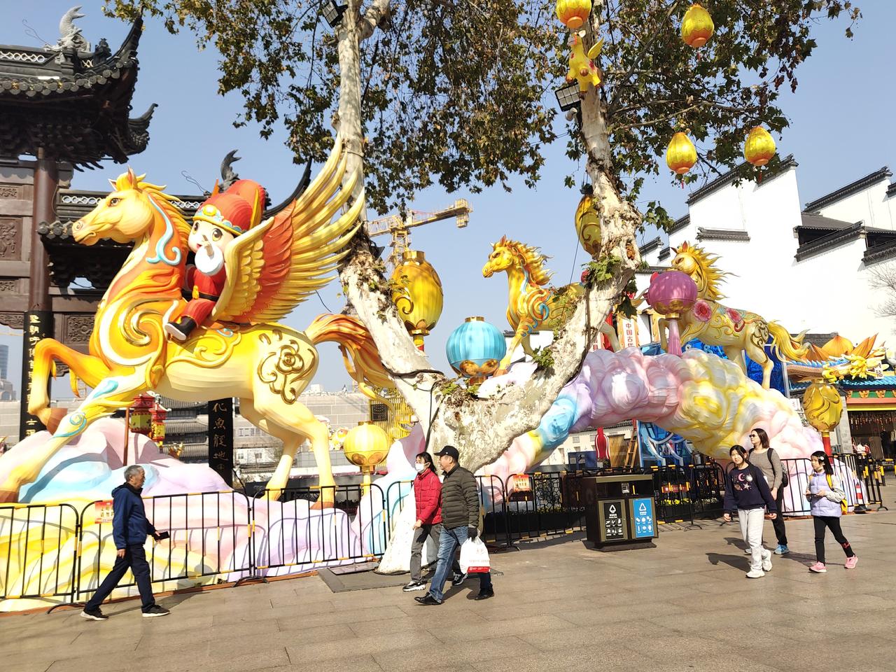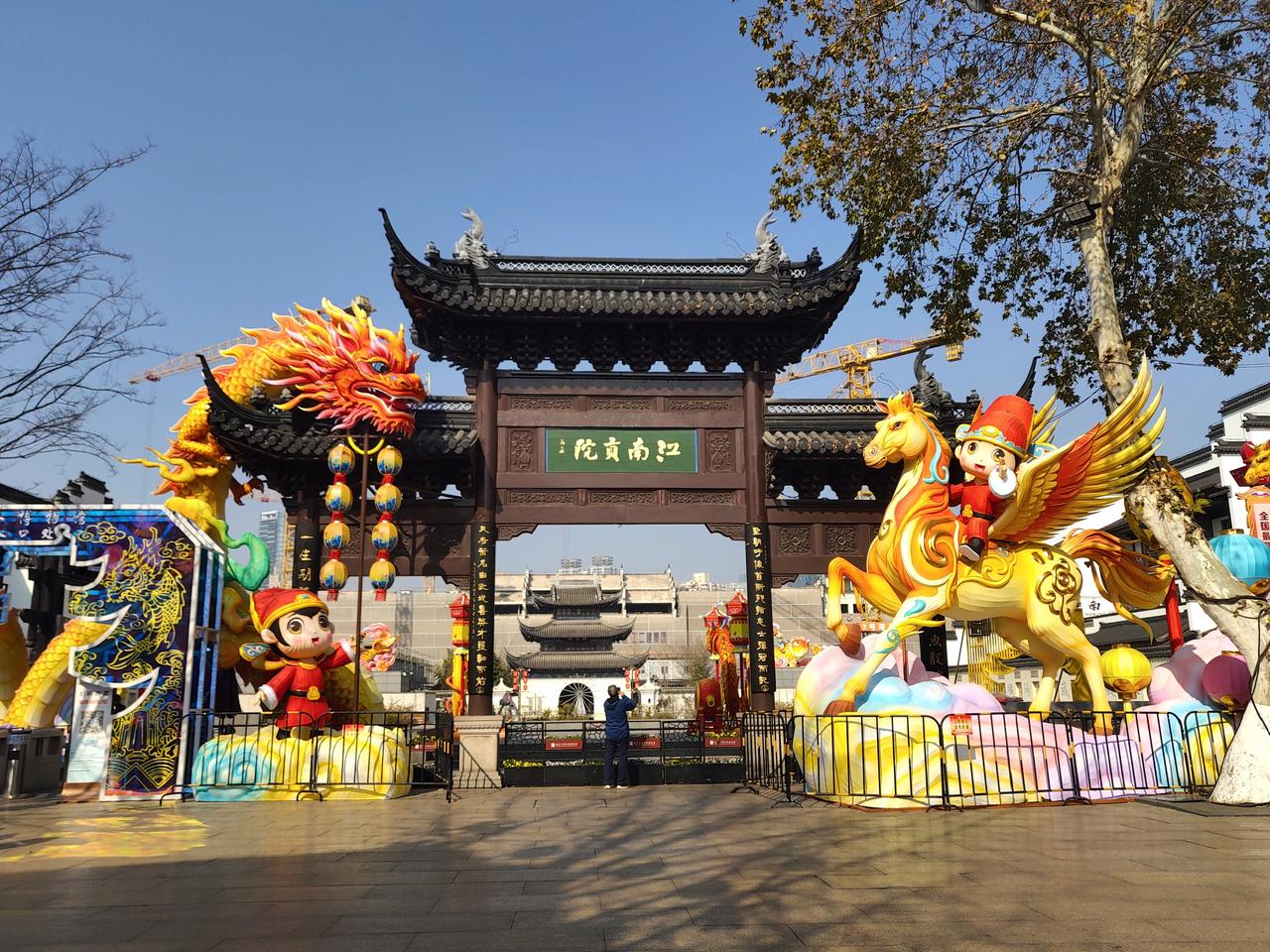 从白鹭洲公园出来,就转进了三七八巷,这条巷子进去了,要是还能空着手空着肚子出来,那就不是一般人。 我肯定是一般人,眼馋嘴也馋,所以出来的时候肚子也饱了,手上也提满了,钱花了还觉得特别值,其他城市都是越到市中心东西越贵,南京不是,论便宜好吃,谁比得过城南? 拎着大包小包走到夫子庙,夫子庙的新年花灯也到位了,老同志走累了,提议在江南贡院门口歇歇脚,我就到处拍拍照。 老同志旁边坐着一个穿着橙马甲的环卫工,那大叔主动跟老同志搭话,说他是安徽的,在这干活挣钱,他说整个夫子庙地区,包括保安,环卫,其他什么的,都是他们安徽人,口气里还挺骄傲的。 他说南京人哪,也没钱,没钱吧还不爱干活。你看我们,得闲就出来干活,家里地还是自己种,农忙了回去忙几天,其他时候就在南京挣钱。 他说管这一片的老板,也不想招南京人干,南京人不愿意吃苦,上次来了两个南京人,干了两天就跑了。 也怪不得南京被称作徽京,安徽人在这里生活挣钱,多满足多自由自在呀,南京包容,也没有地域歧视,这打扫卫生大叔大大方方承认自己是安徽人,言语里反而带着几分自豪。 一路走我脑子一直转着他的话,“南京人也没钱,还不爱干活。”说的像真的一样,我想南京的大爷大妈,多多少少好个面子,也想的比较开,对金钱欲望没那么强吧,钱多钱少,够生活就行了,多大事啊! 不过也希望但凡有南京人愿意干这些工作,还是要多多给南京人机会。