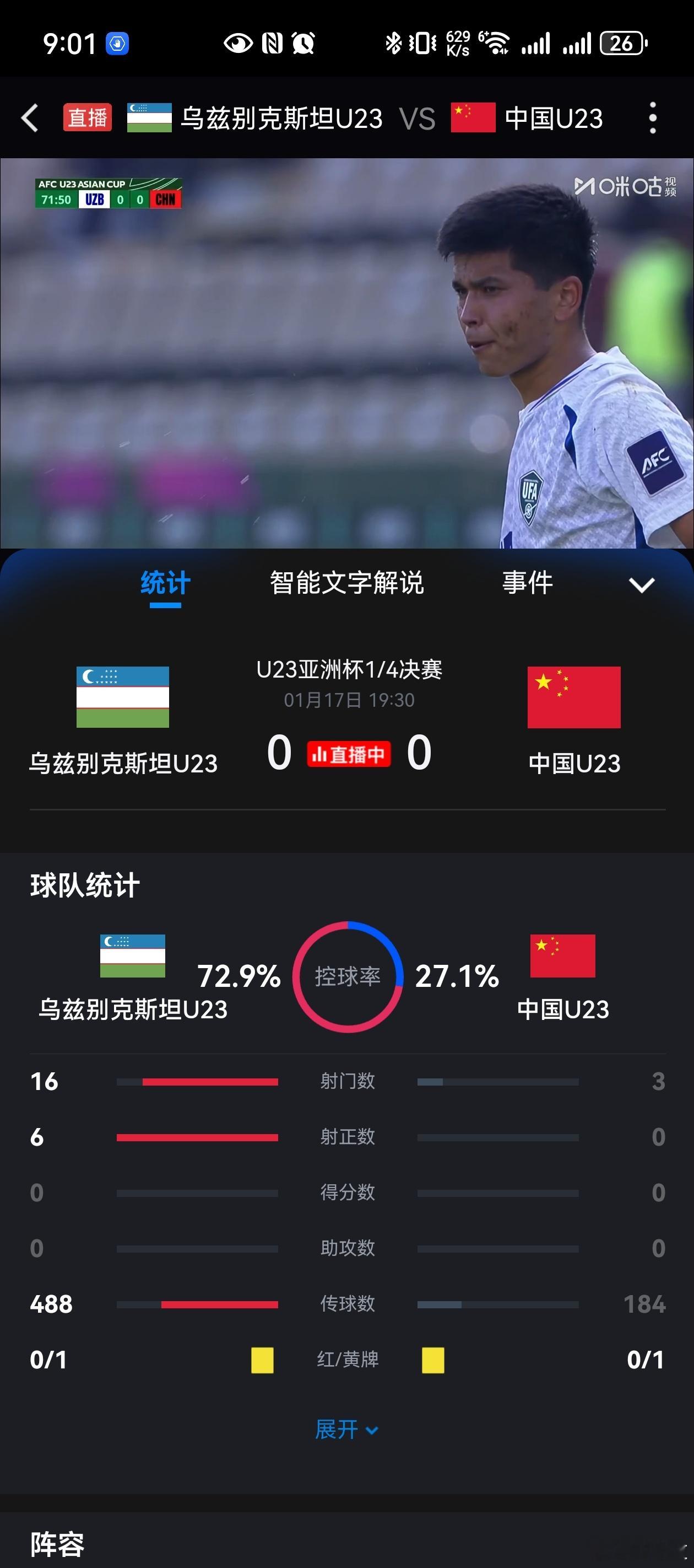 U23国足vs乌兹别克斯坦全场被乌兹别克斯坦U23压着打得国足要不是有门将李昊另一边红色的曼联虽然也被曼城压着打,但好歹射门还行吧。 上海