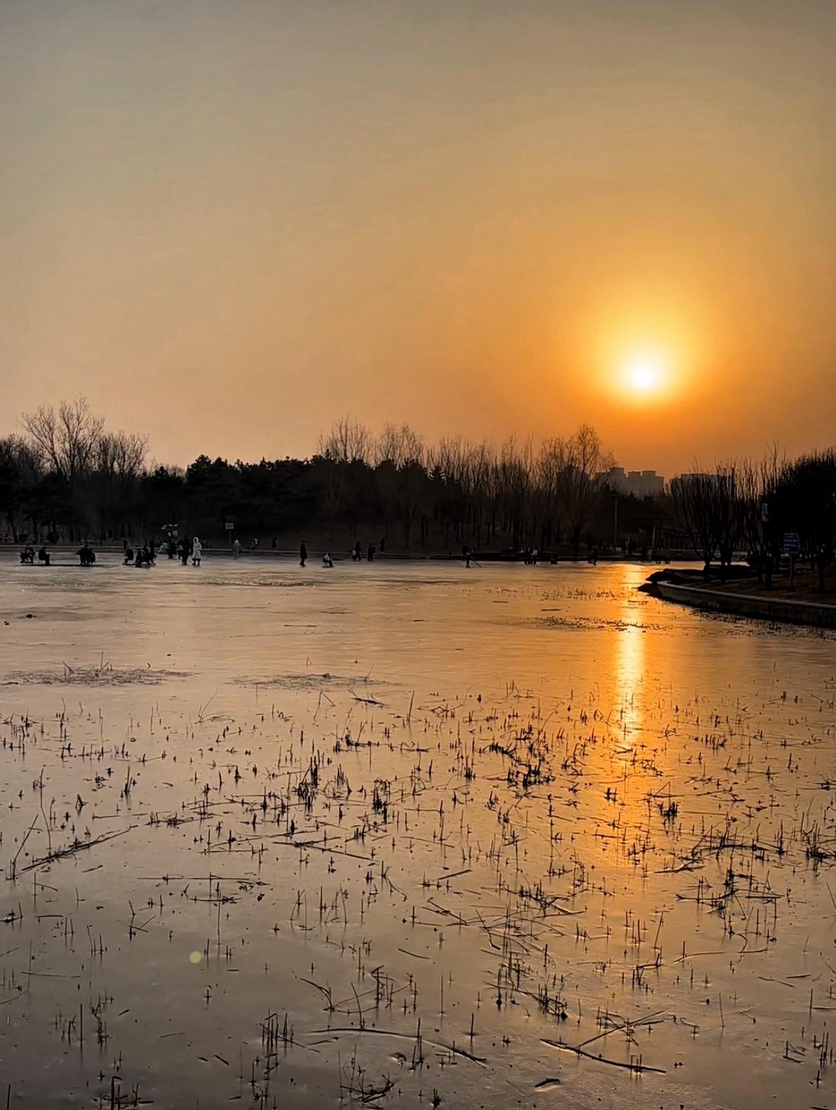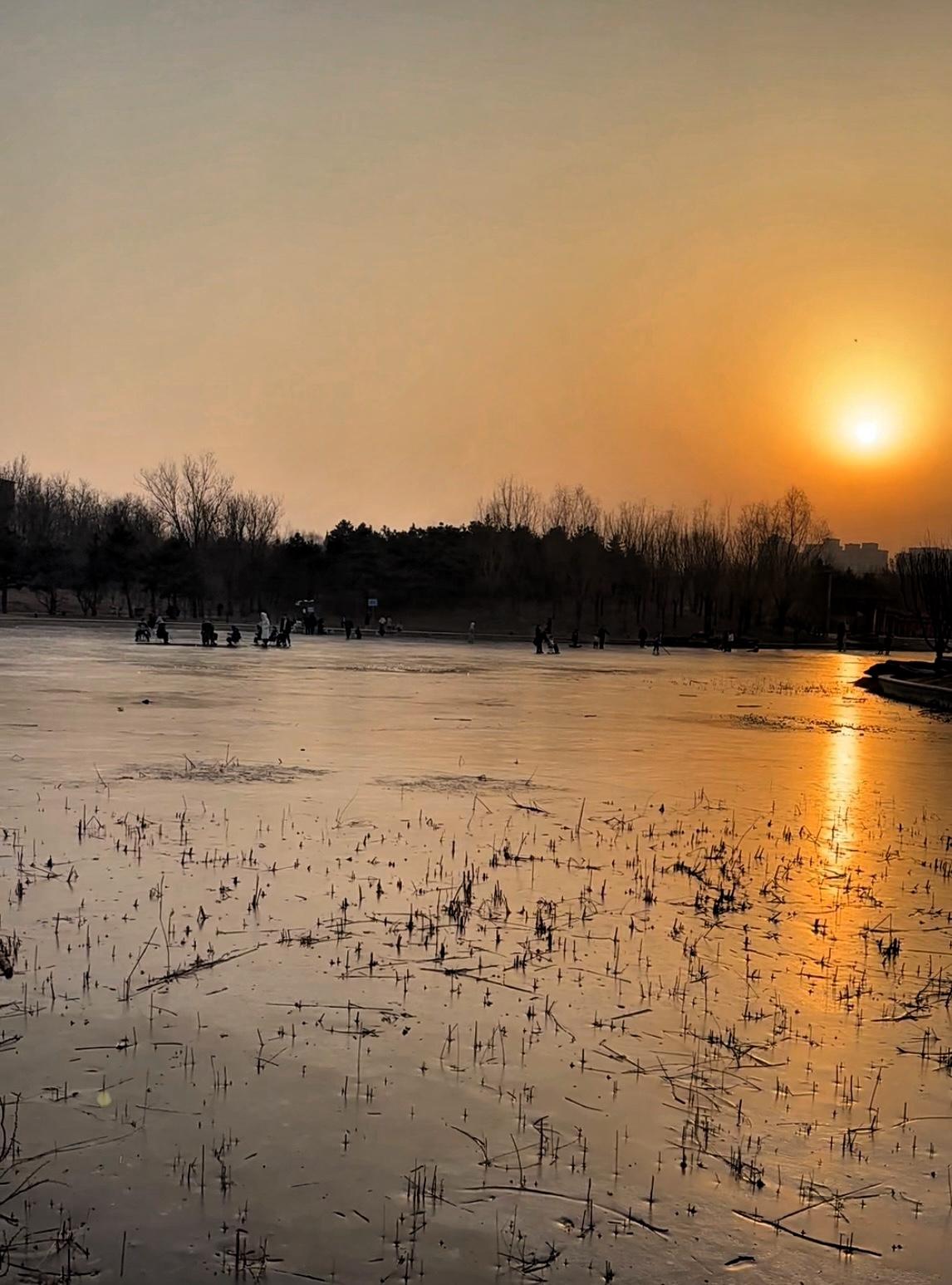 夕阳•冰湖-赋 文/熏墨 冰湖吞落日,熔破琉璃天; 碎金千万片,浮荡水云间; 寒枝栖倦鸟,斜照透疏烟; 欲把余晖揽,随风入袖边。