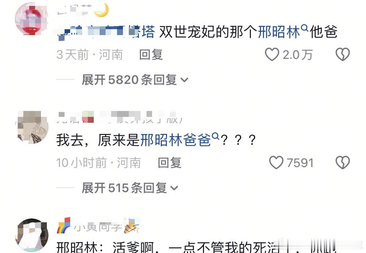 刷到一个视频,开封fy 悬💰了一个人,plq全都说是演员邢昭林的爸爸,邢昭林的