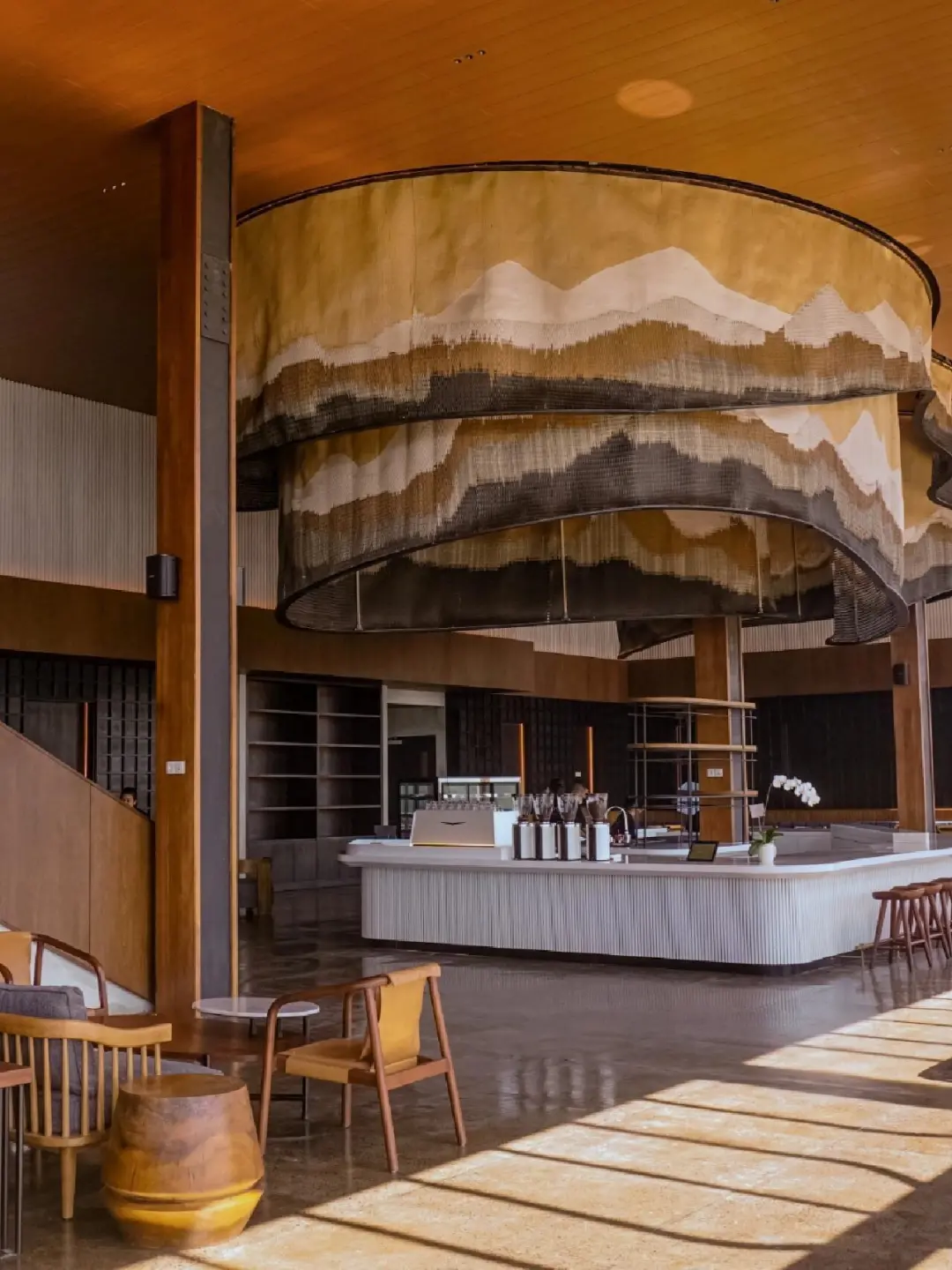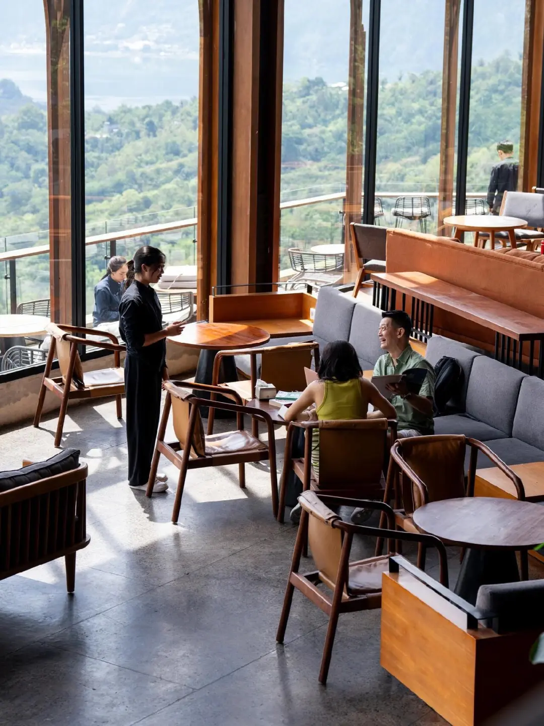 🌋咖啡馆正对巴杜尔火山,是一幢极具设计感的透明玻璃屋子,内部装饰的高雅、奢华、明亮,每一个角落都漂亮极了