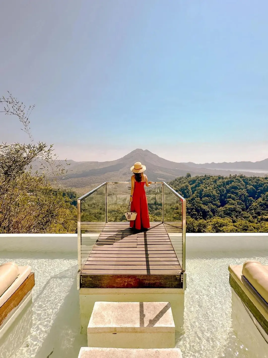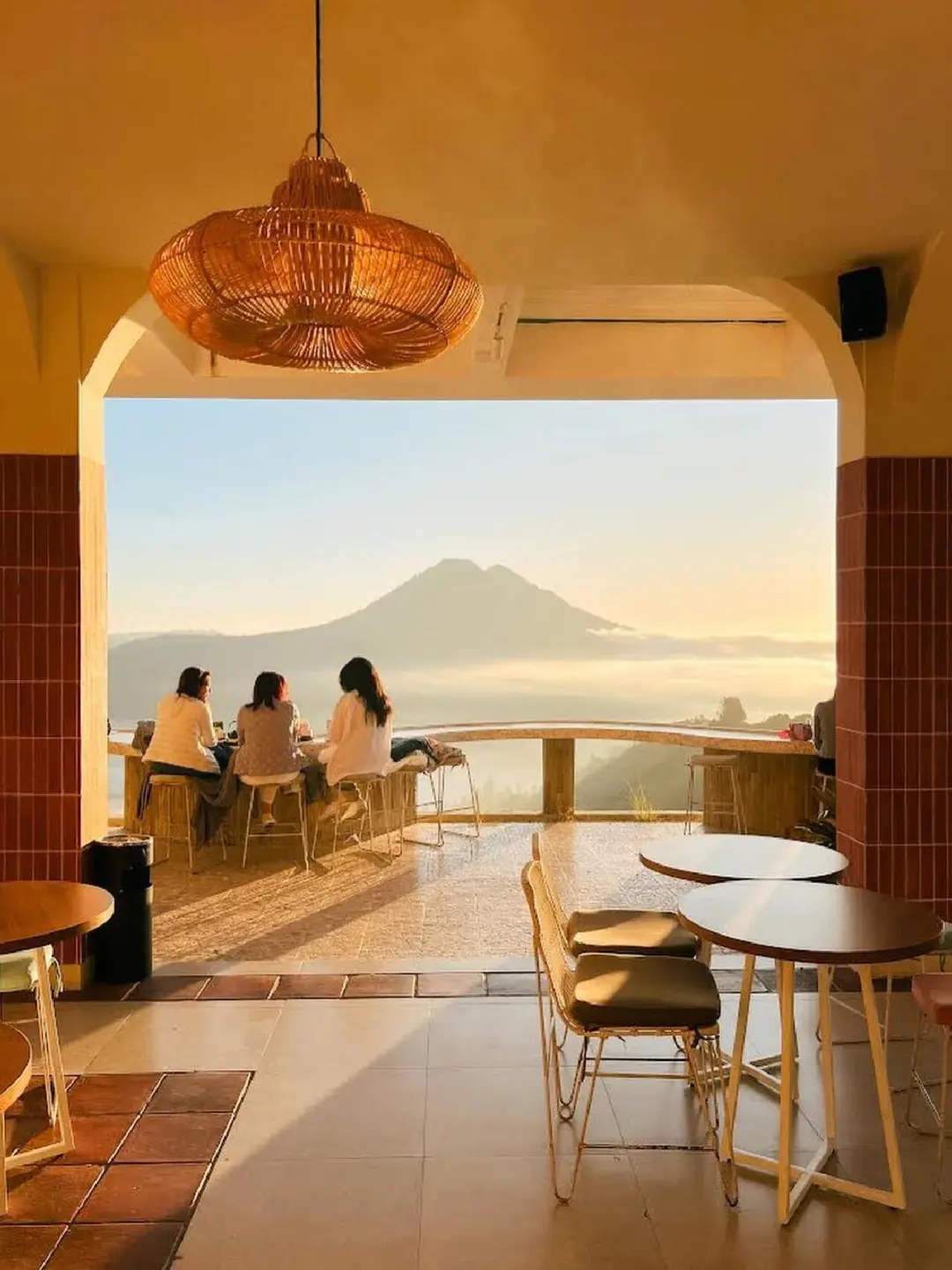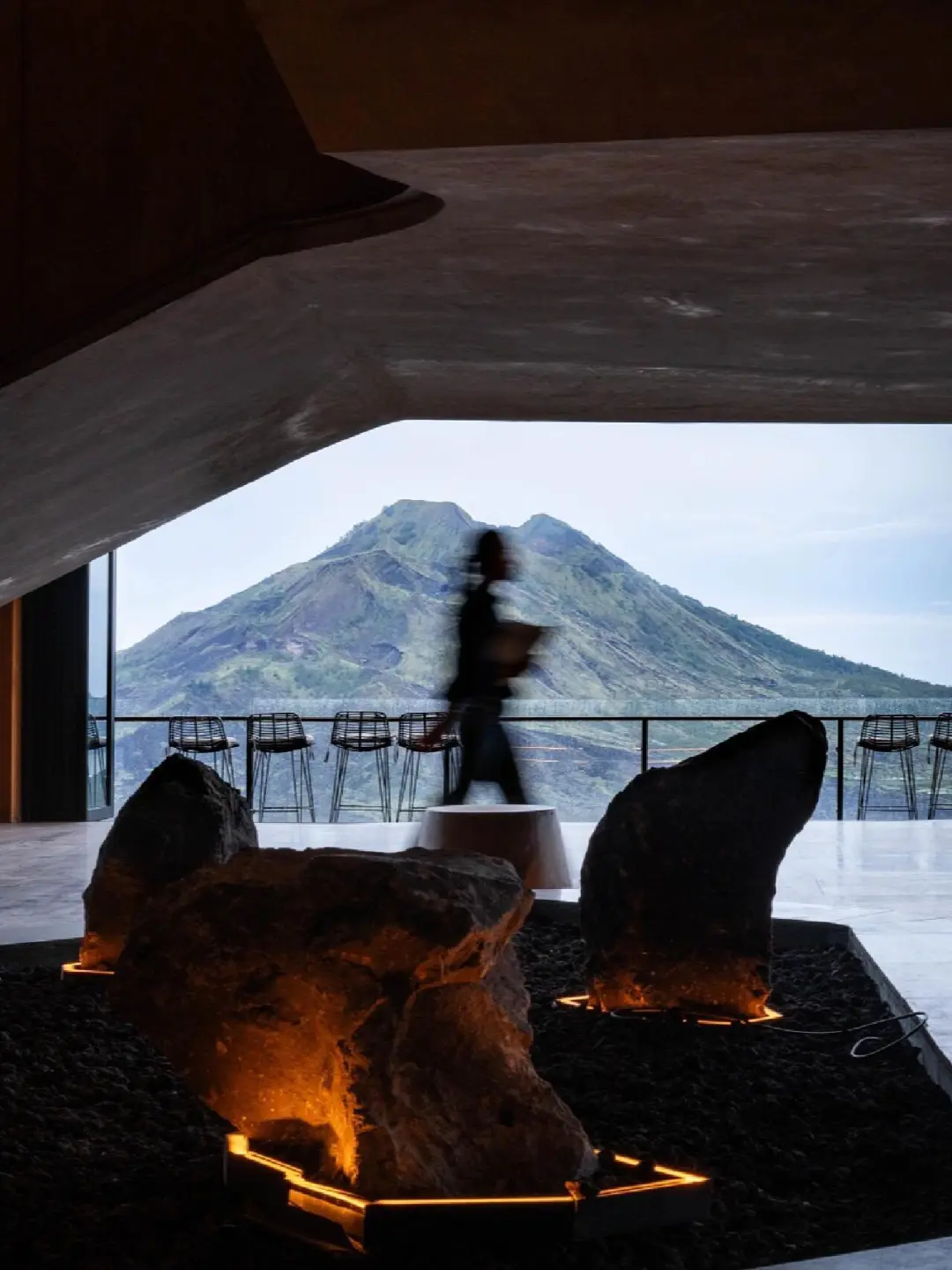 🌋这家咖啡馆最近在ins上🔥的不得了,3层楼高的建筑随着阶梯环绕在山壁上,正面面对巴杜尔火山,右边则是阿贡火山。