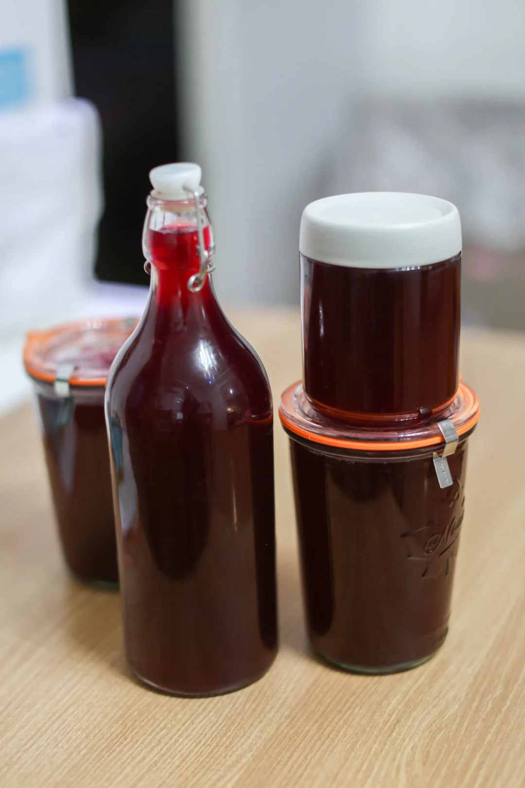 做了几乎可以喝一年的量,放在冰箱里冷藏保存。夏天的时候兑气泡水、香槟或者白葡萄酒,非常好喝。