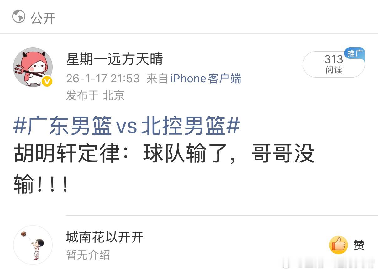 广东男篮vs北控男篮 胡明轩粉丝也同意我的评价:哥哥没输!