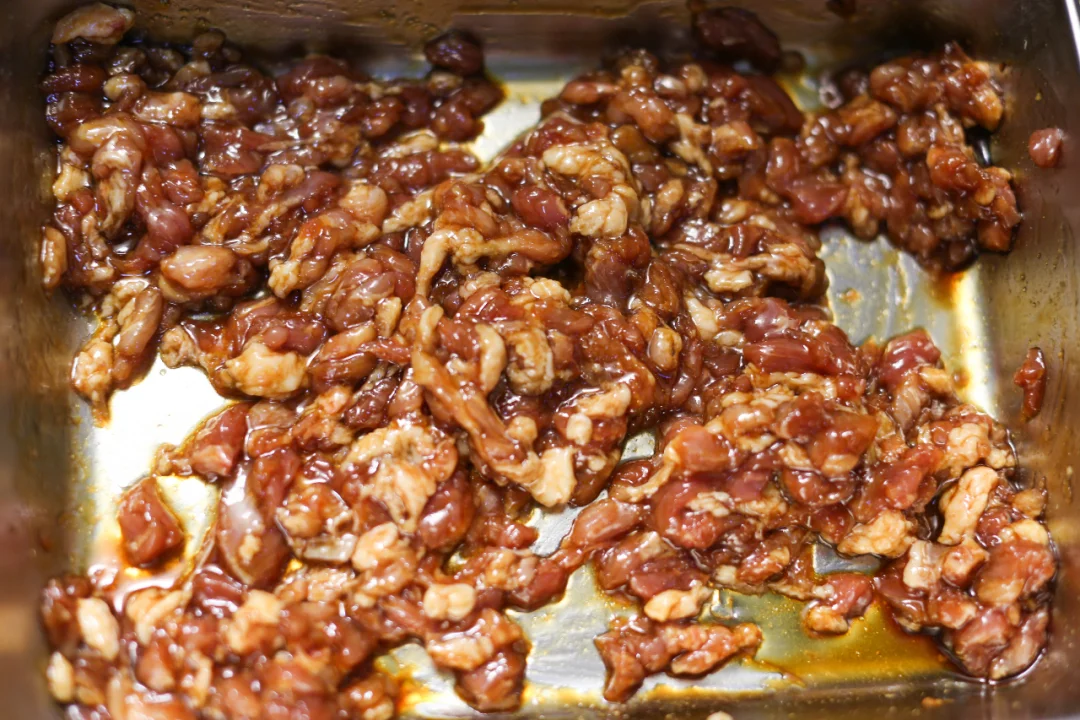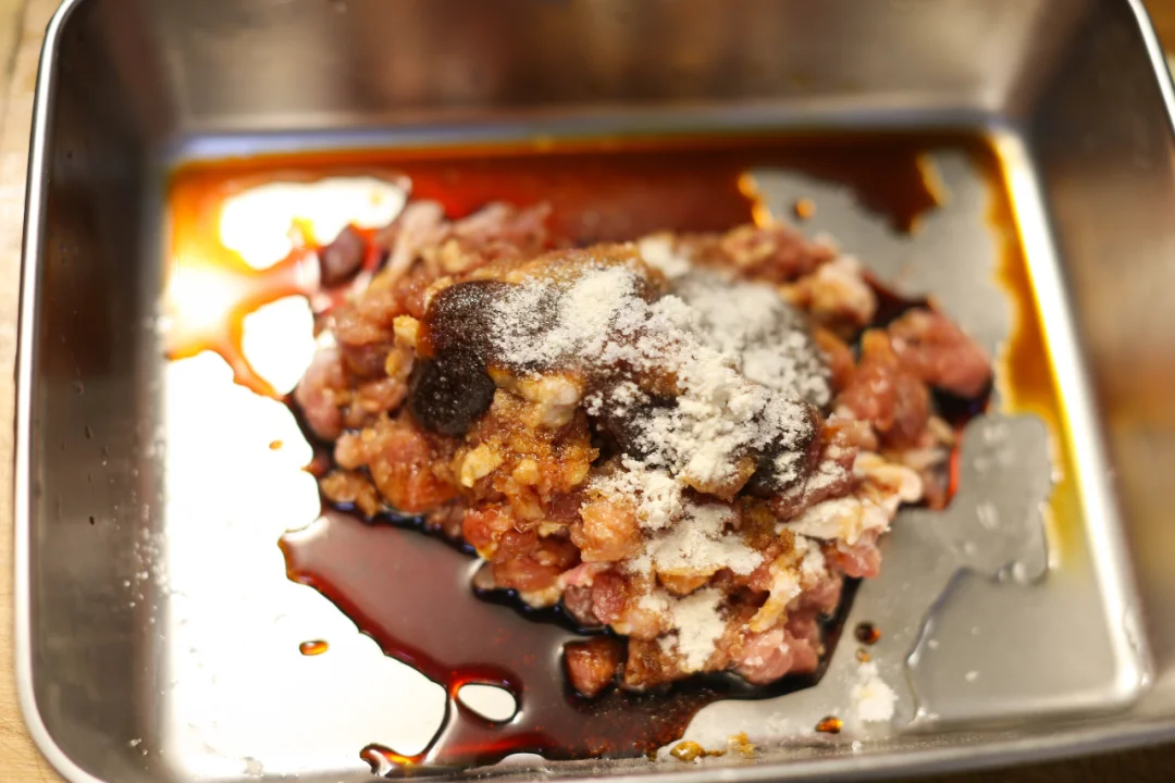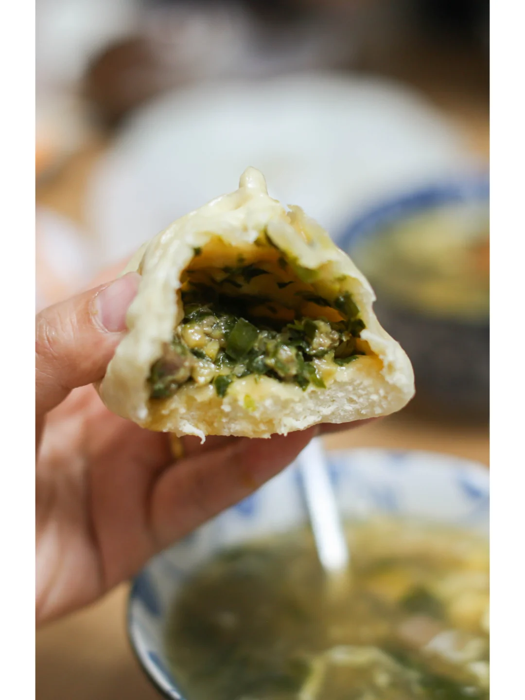 2️⃣:拌馅时,韭菜切碎后可以先用香油拌匀,锁住水分,防止出水。