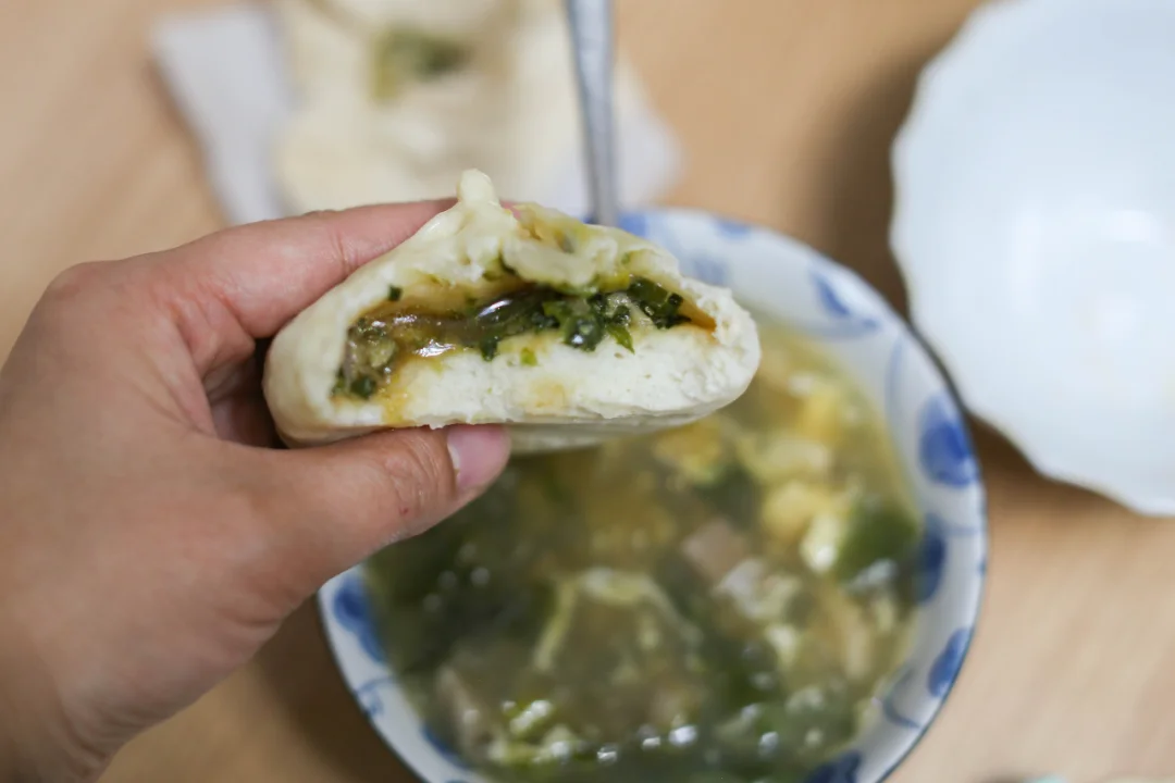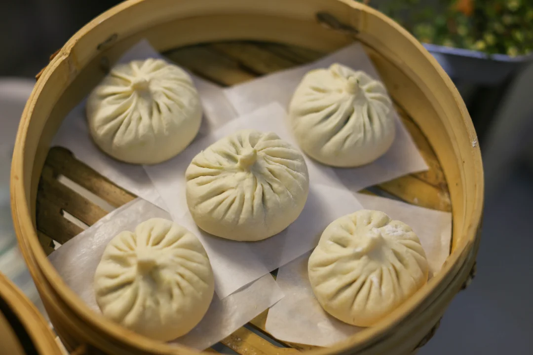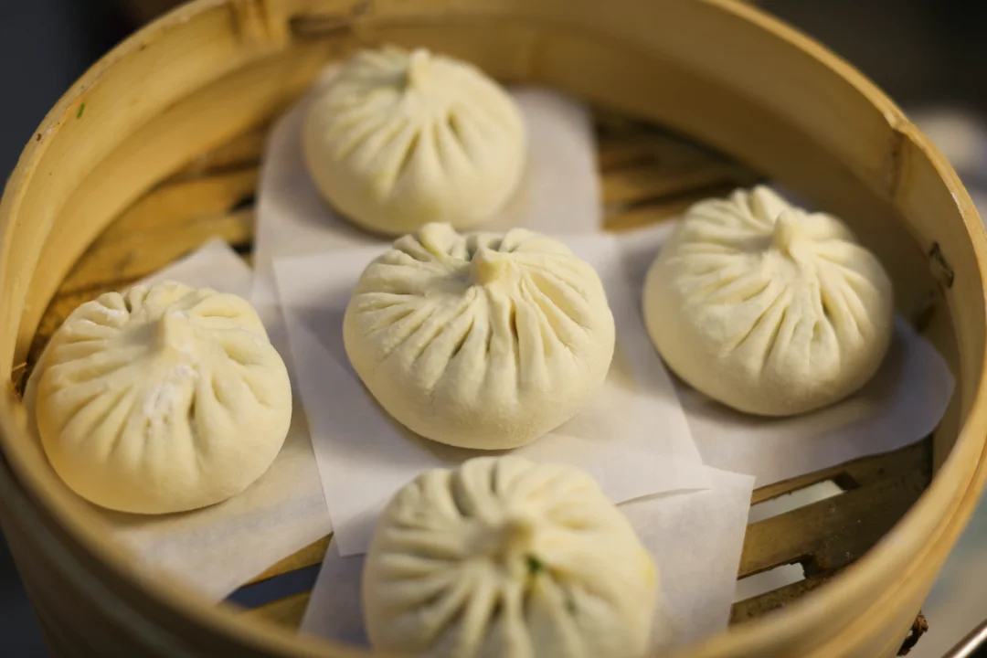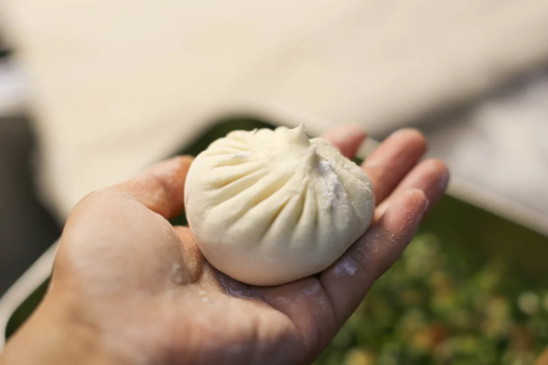 面团醒发至两倍大,揉搓排气,分成大小均匀的剂子。擀皮、包馅、捏褶,一个个白白胖胖的包子在蒸笼里整齐排列,像极了等待检阅的士兵。