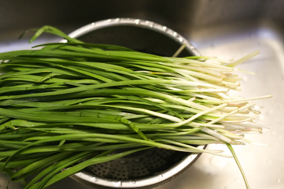1️⃣:春天的韭菜最鲜嫩,建议选择叶片宽厚、颜色翠绿的韭菜。