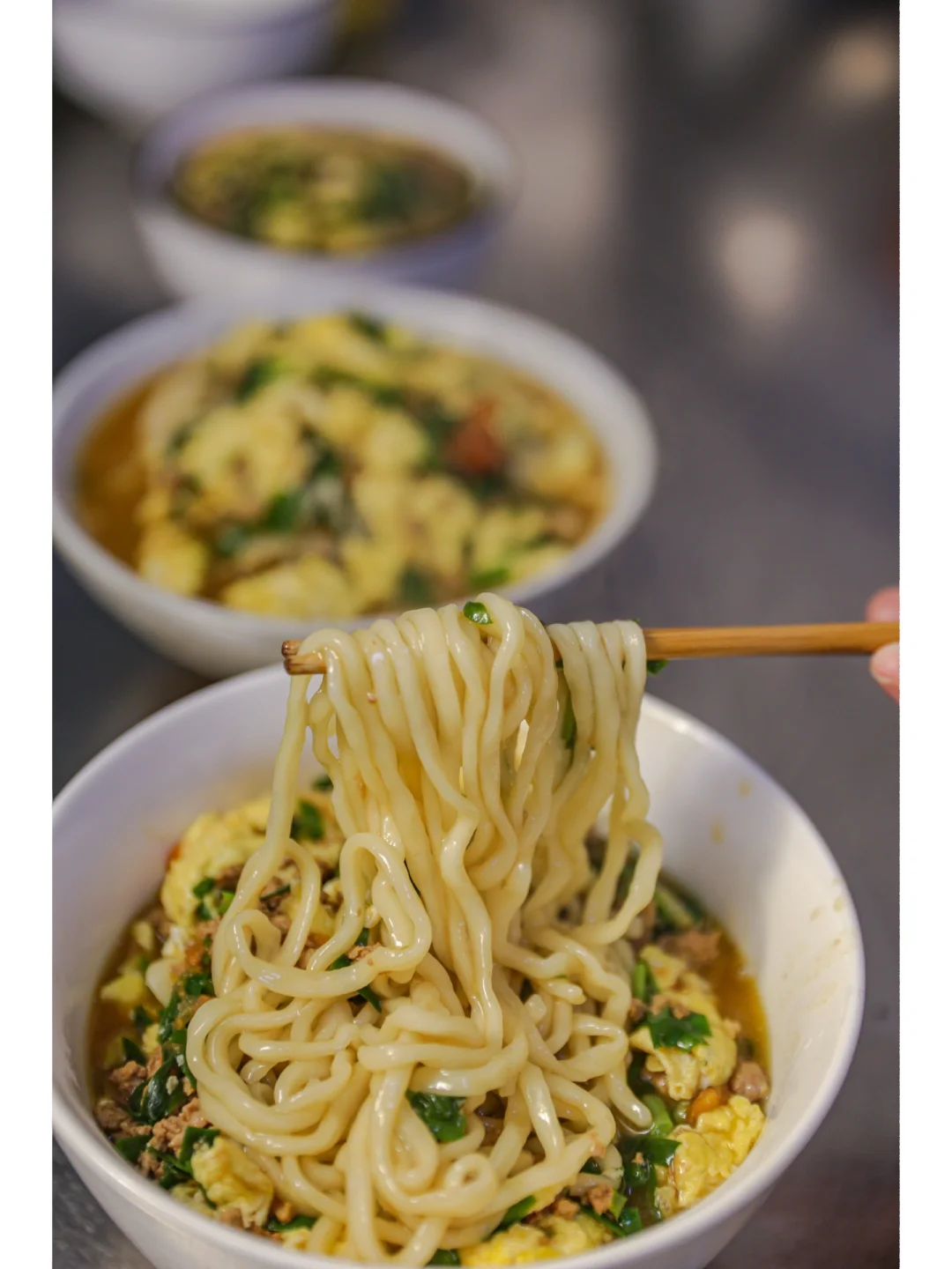 韭菜肉末鸡蛋碎炝锅面,味道绝了~